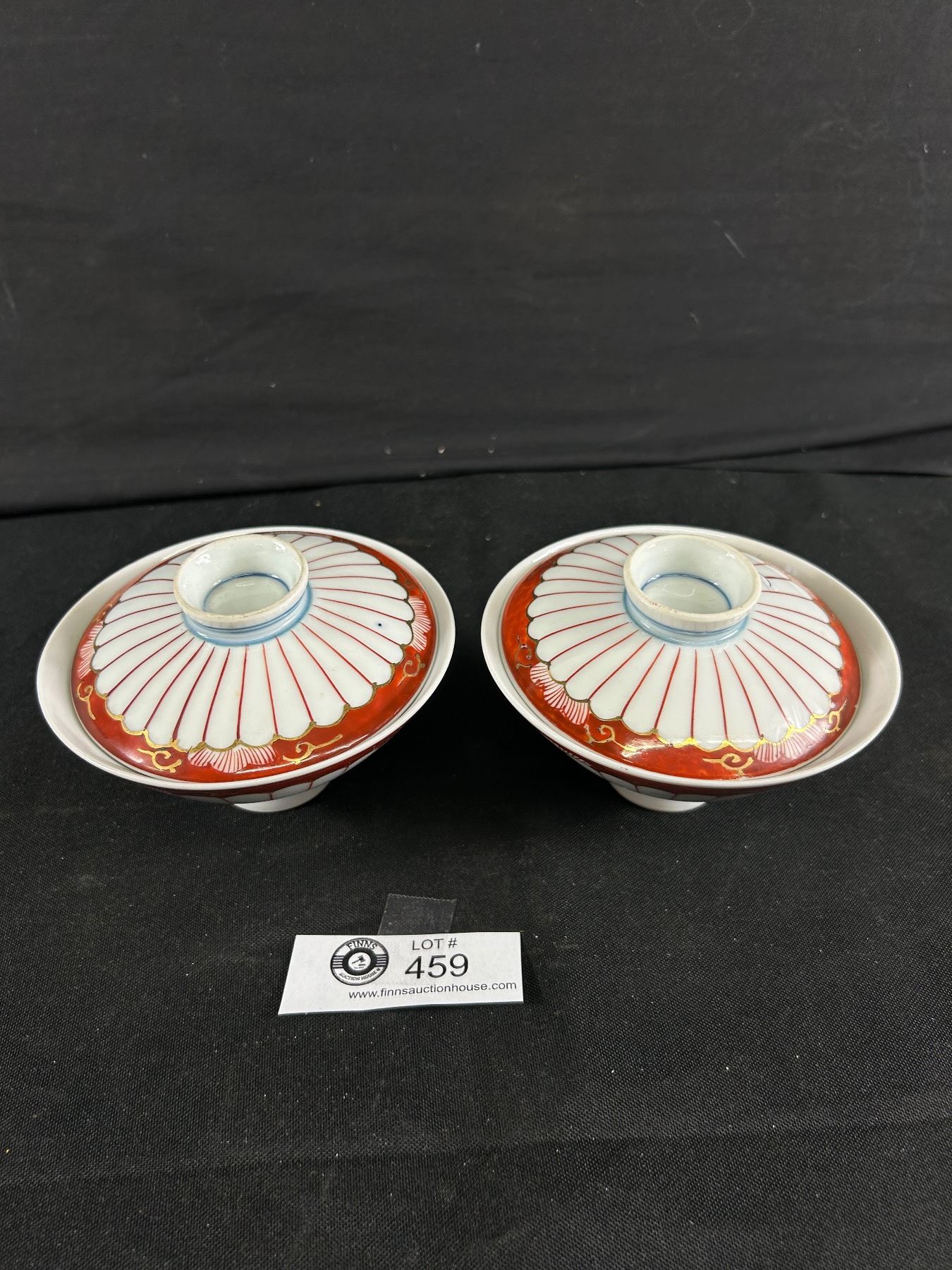 Pair of Vintage Fine Asian Porcelain Cups & Covers