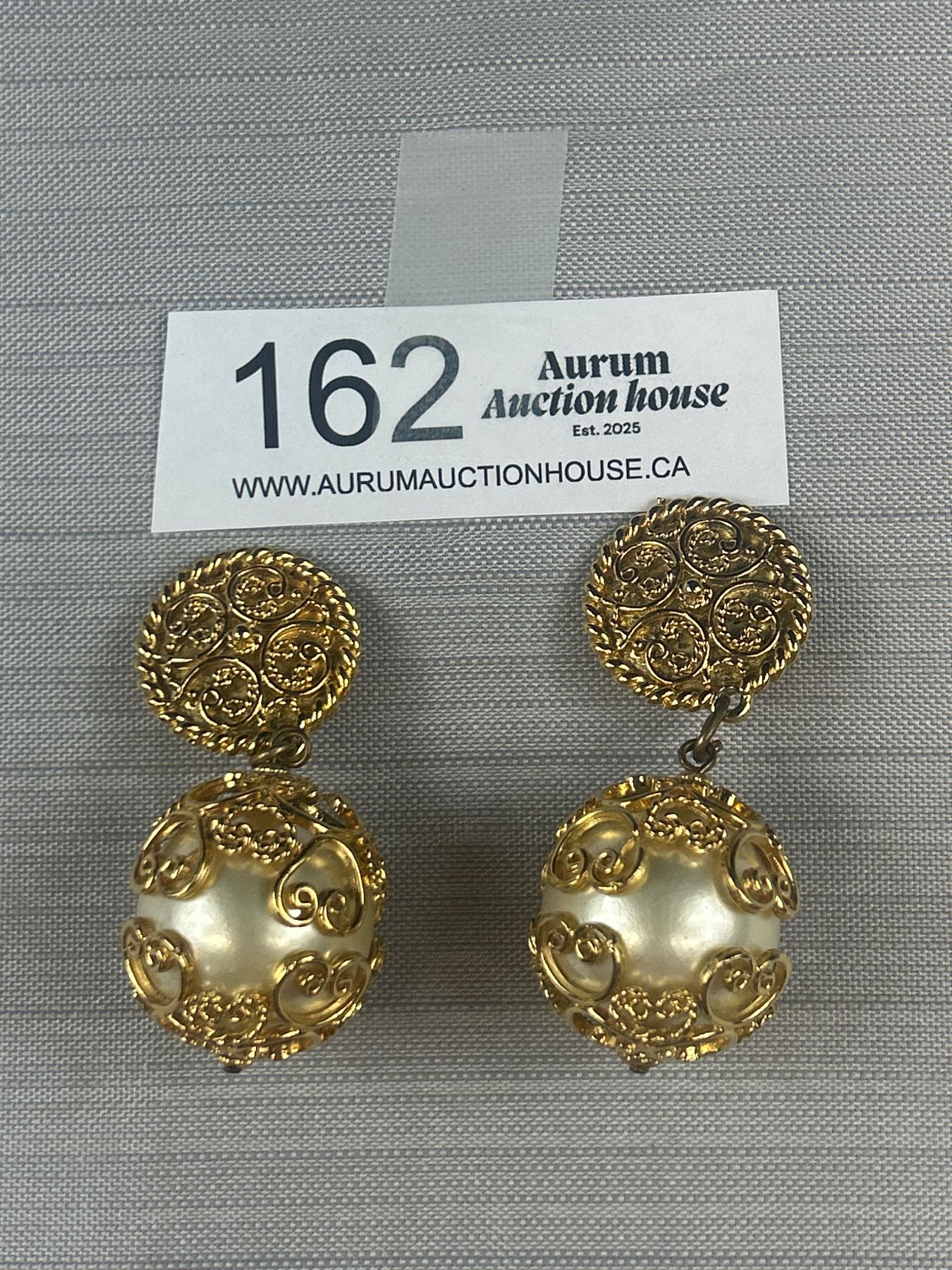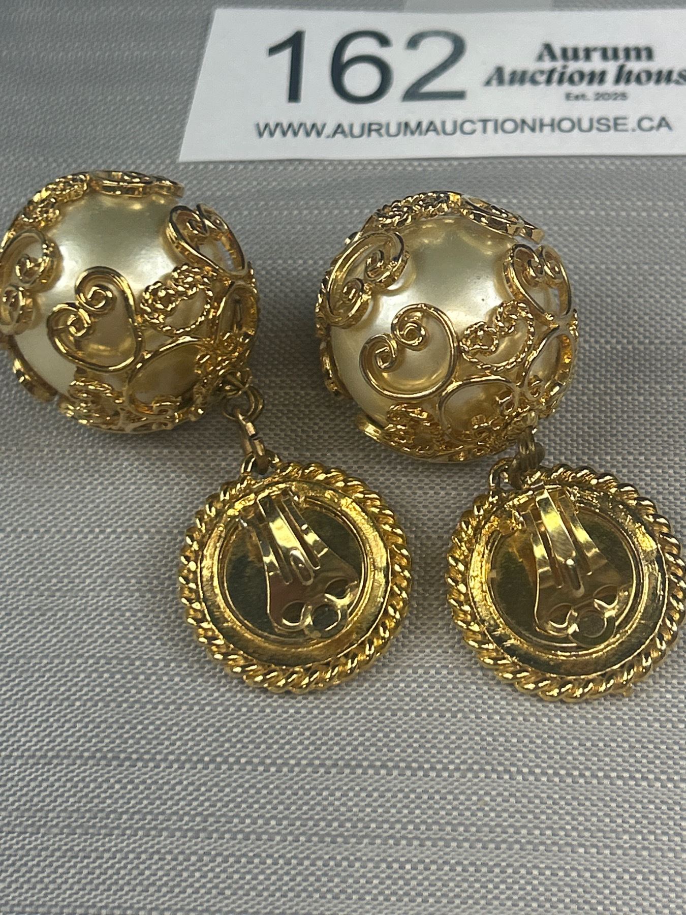 Pair of Vintage Unusual Huge Pearls Clip on Earrings