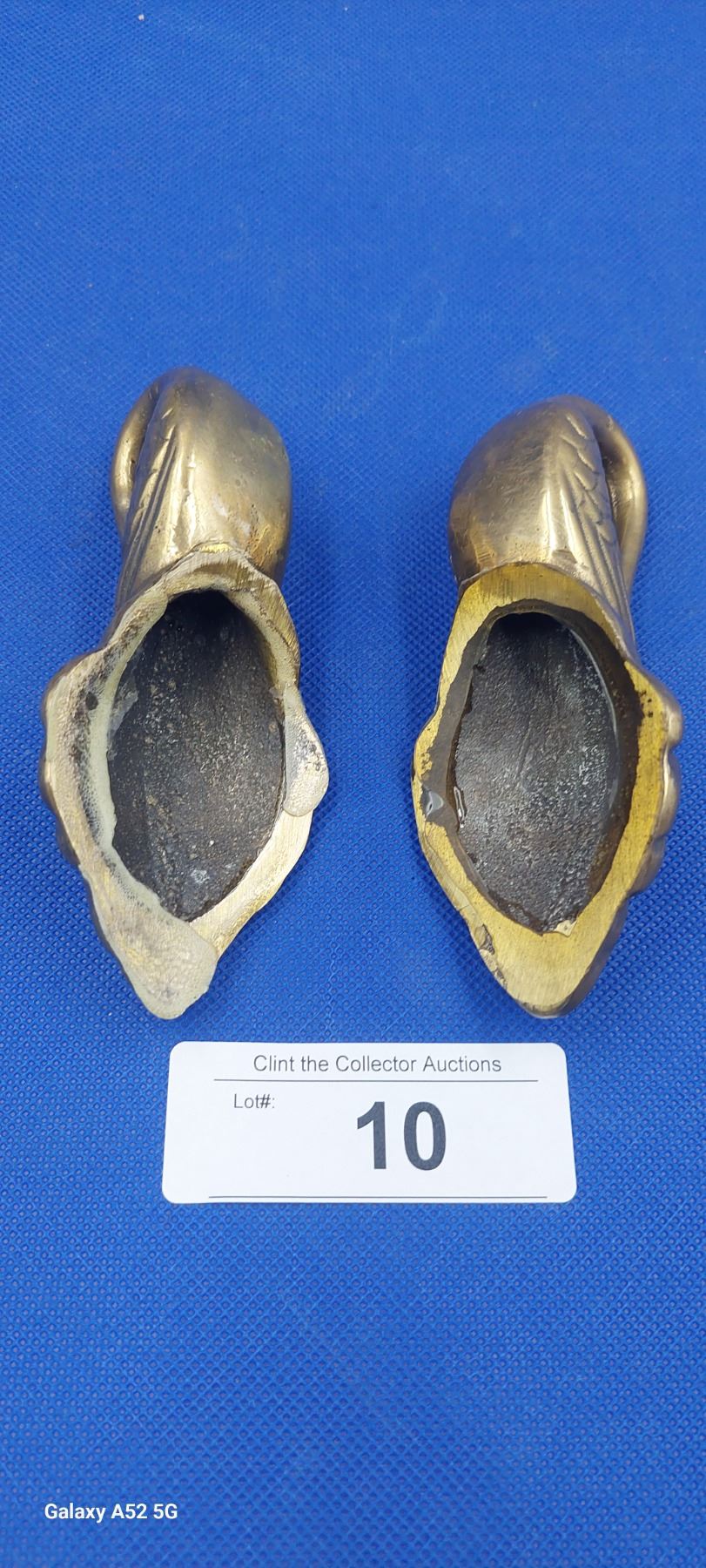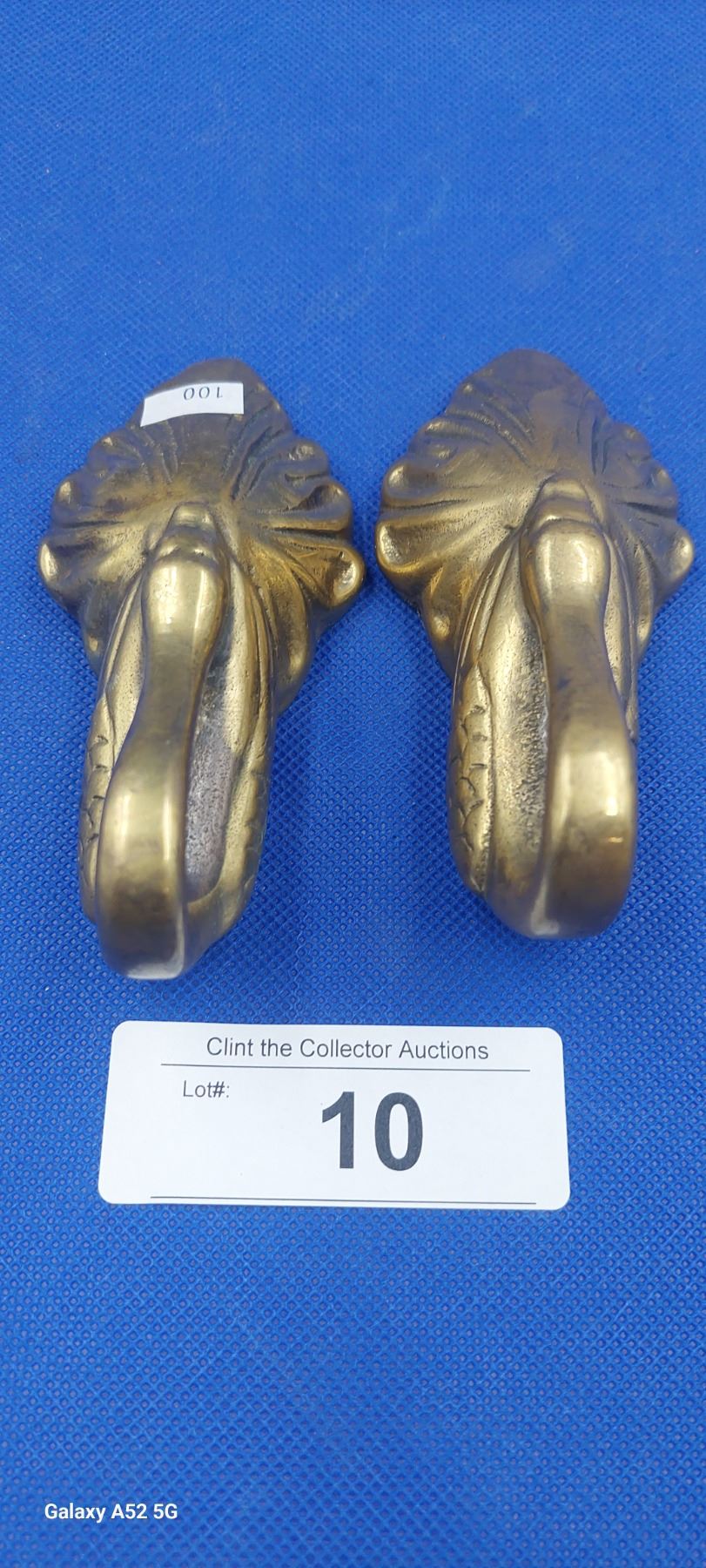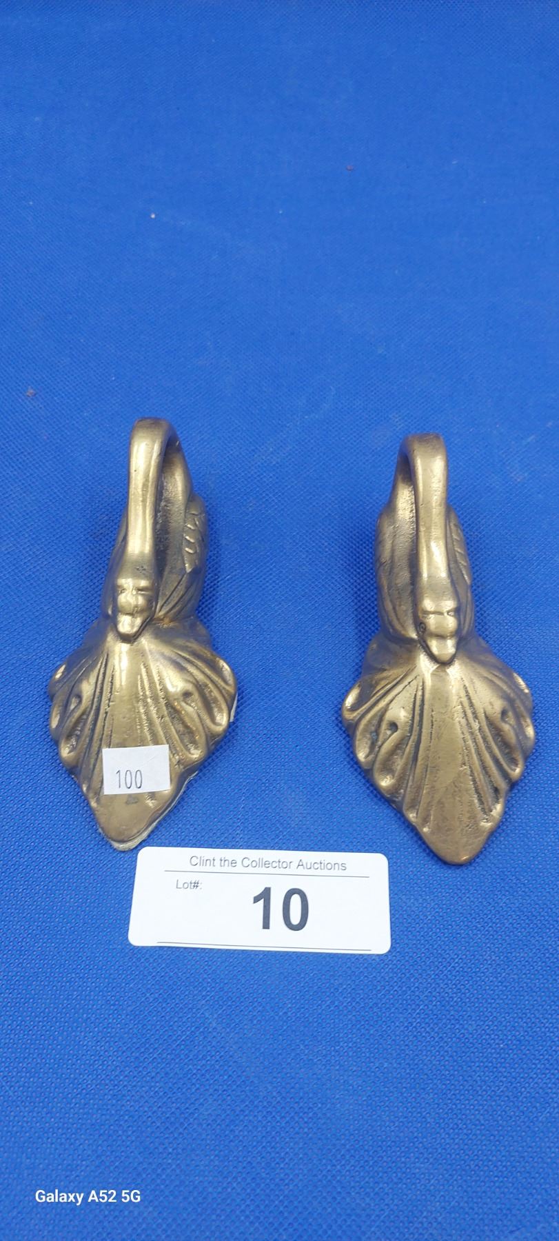 Pair of antique embossed brass swan door pulls