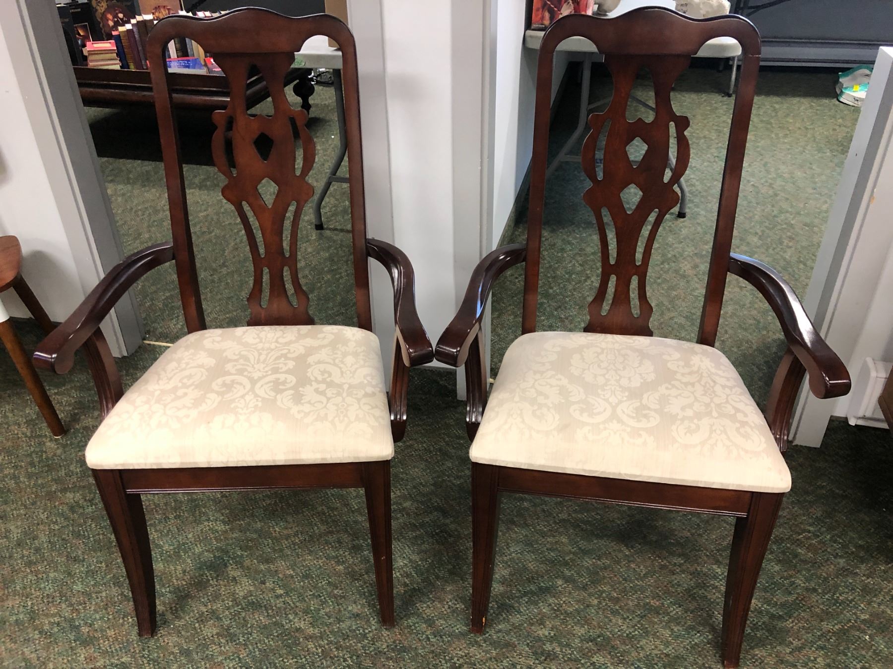 Pair of cherry wood finish dining room chairs