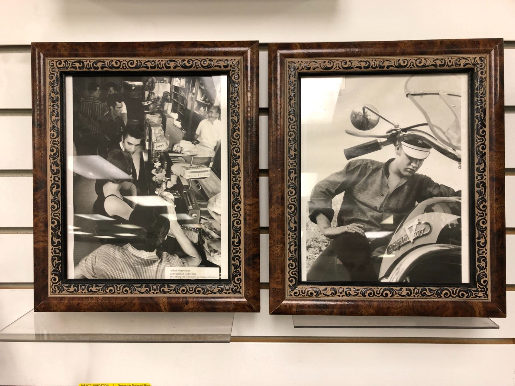Pair of framed Elvis Presley black & white pictures - each picture measures approx. 10 1/2in x 12 1/2in