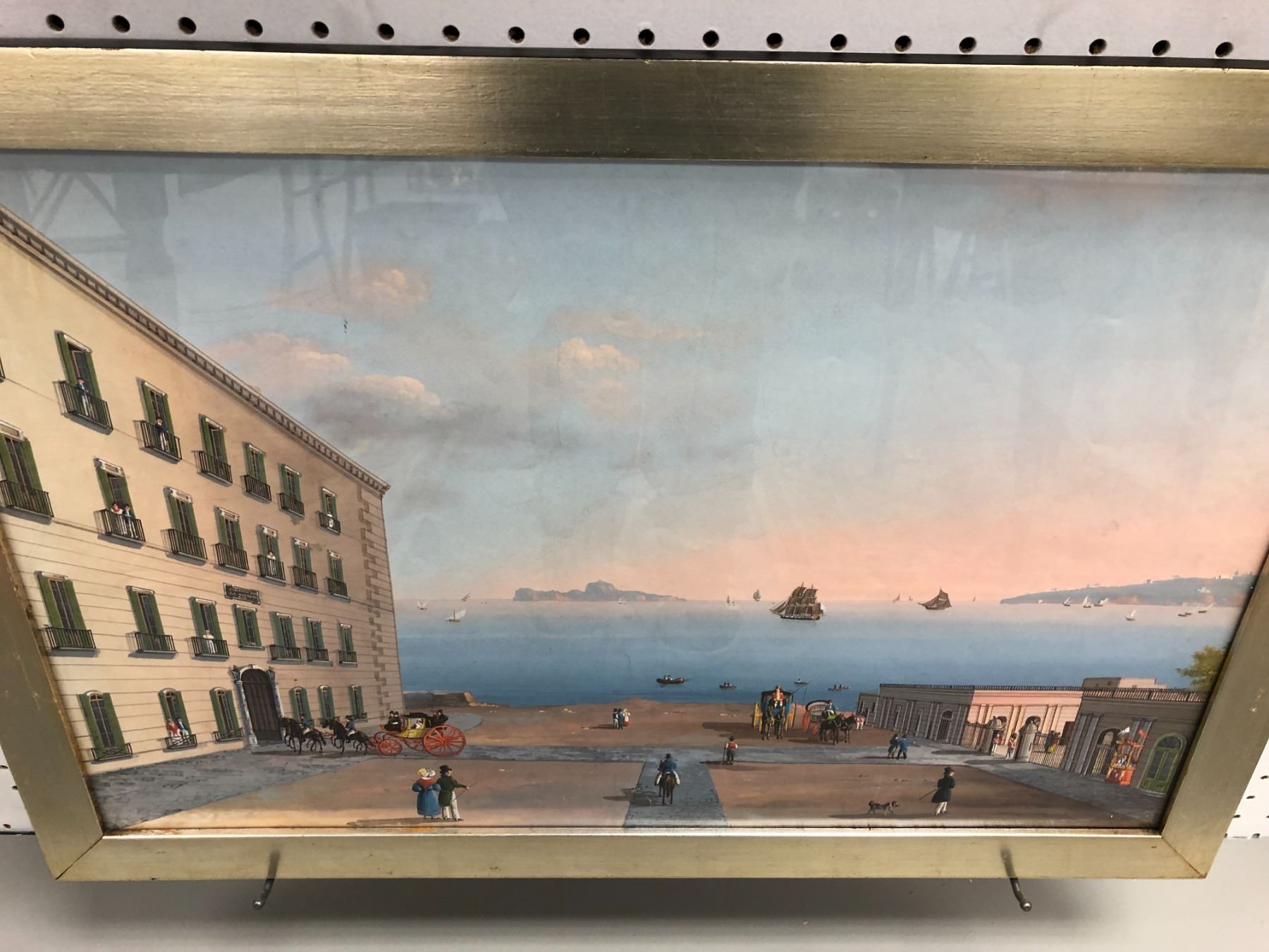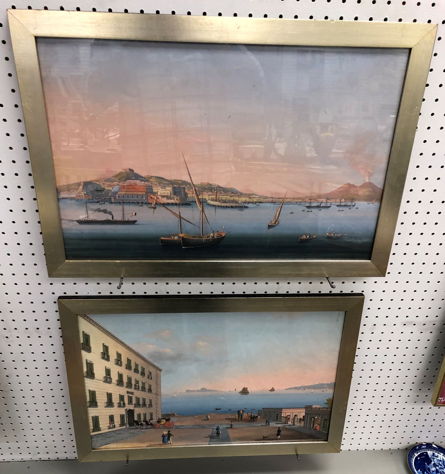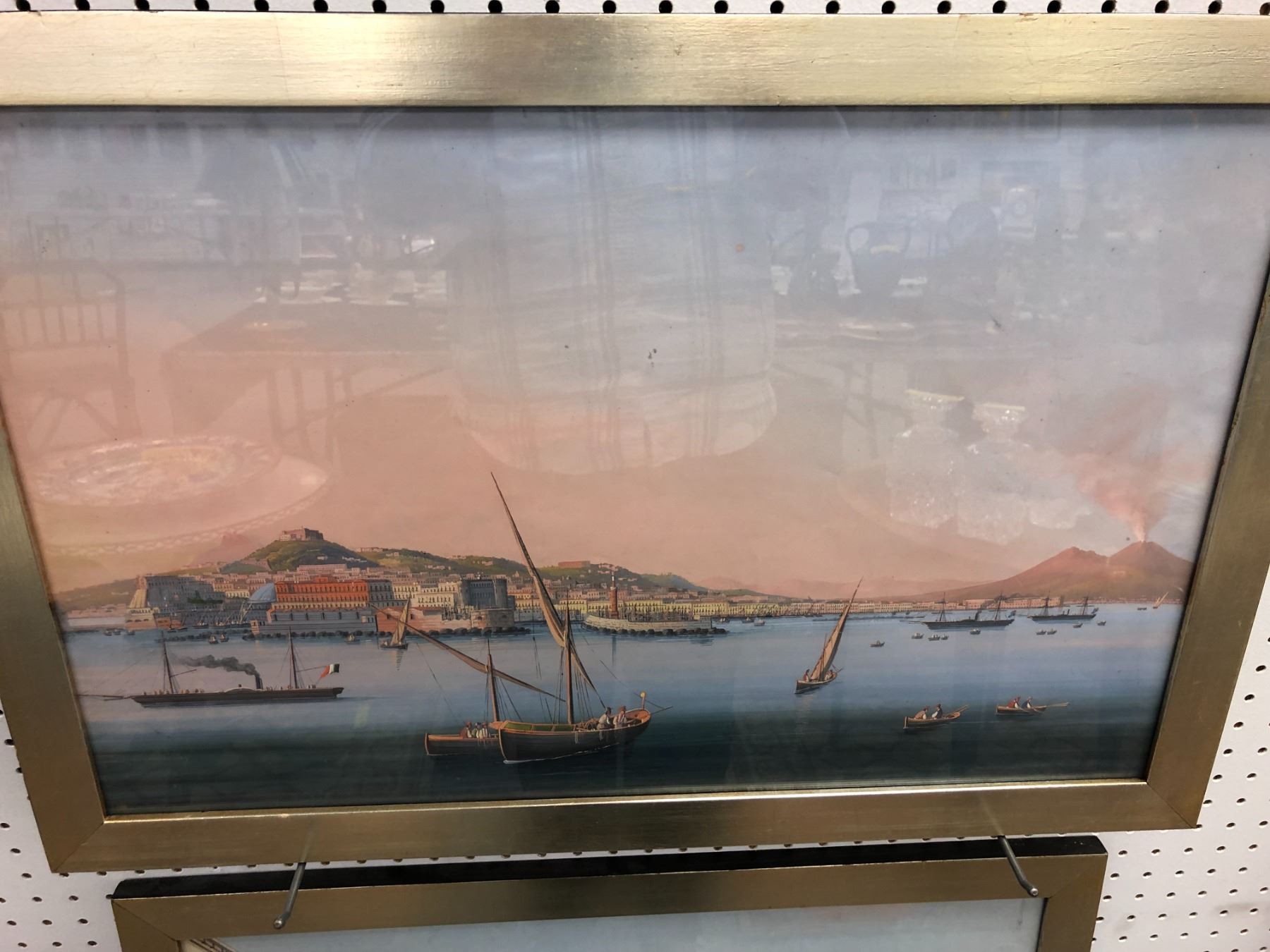 Pair of framed vintage Mediterranean port prints - each print measures approx. 27 1/2in x 18 1/2in