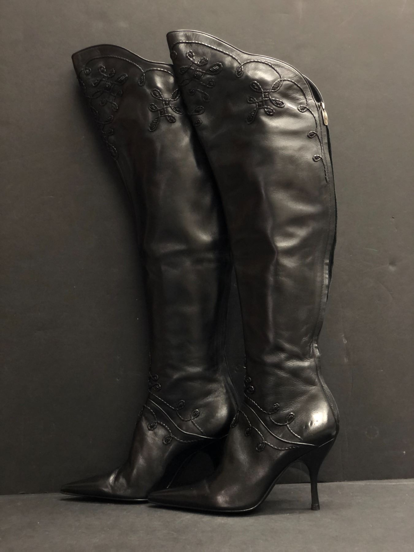 Pair of knee-high high heel shoes - Sergio Ross Vero Cuoio Black leather US 10
