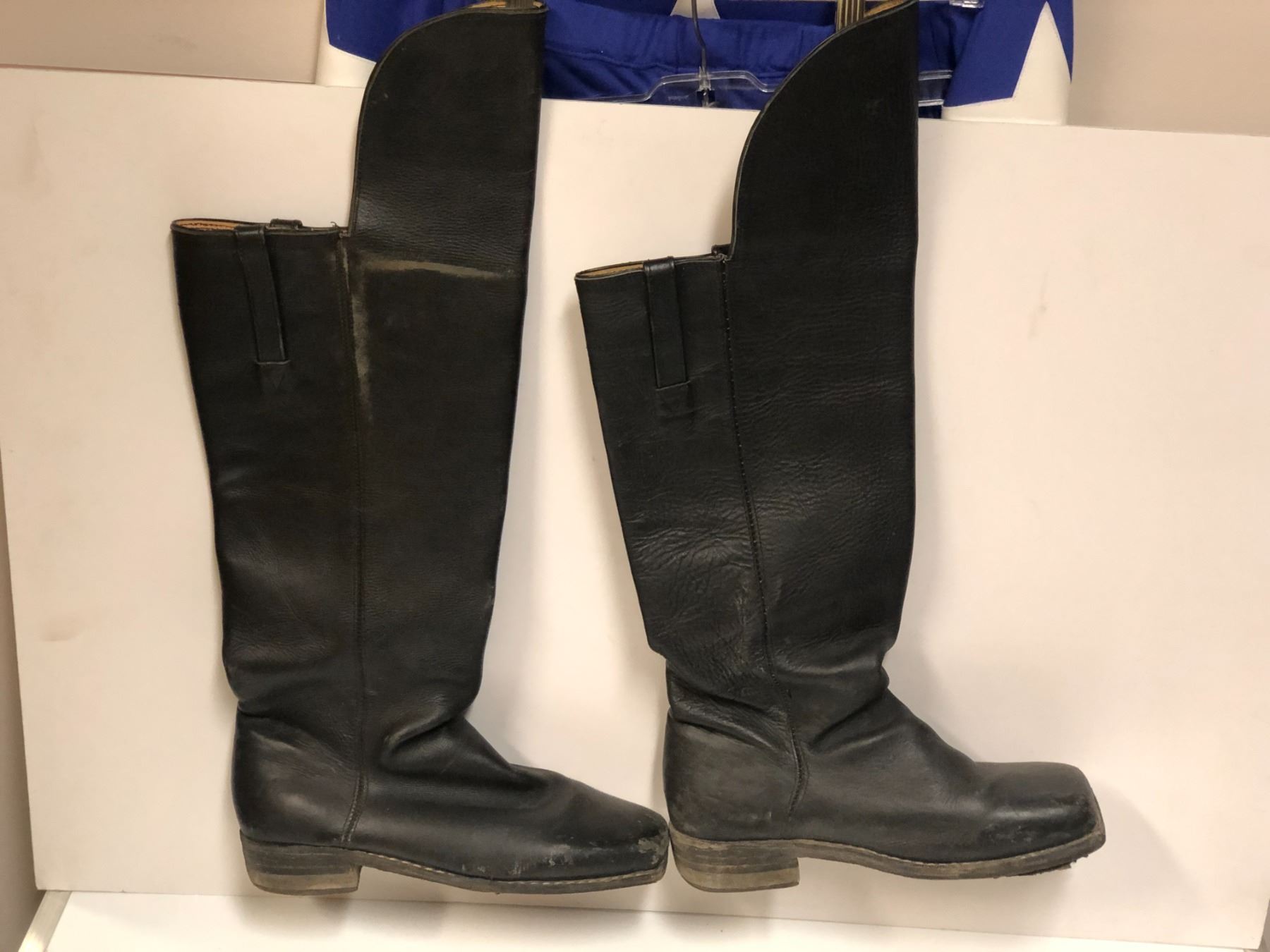 Pair of mens sz. 10 black leather riding boots (From the superhero show)