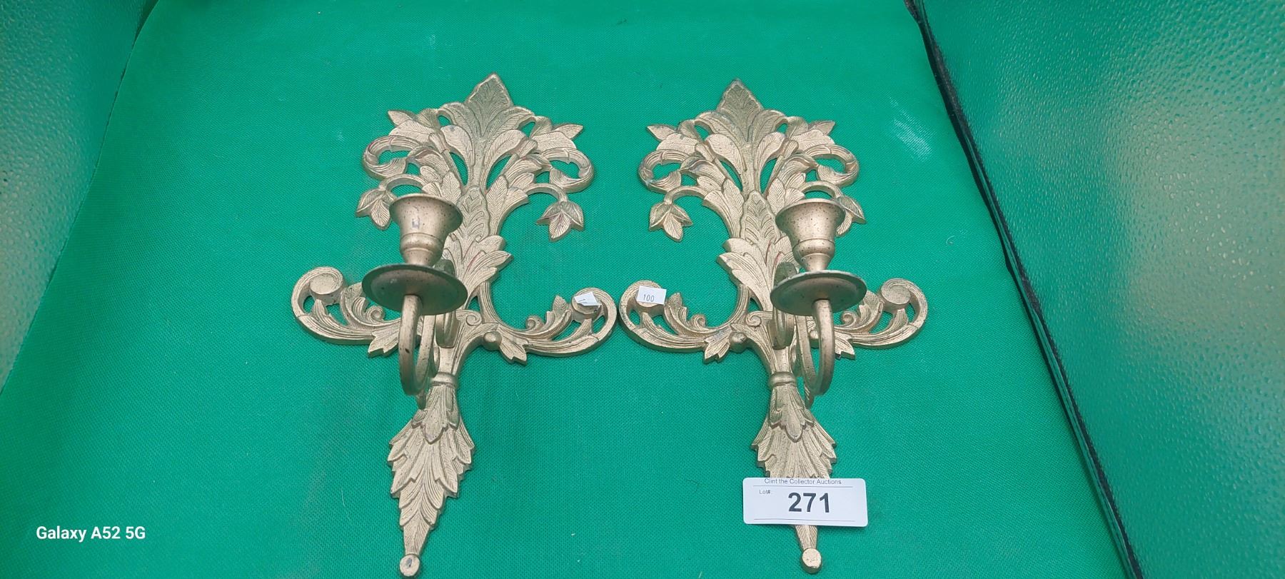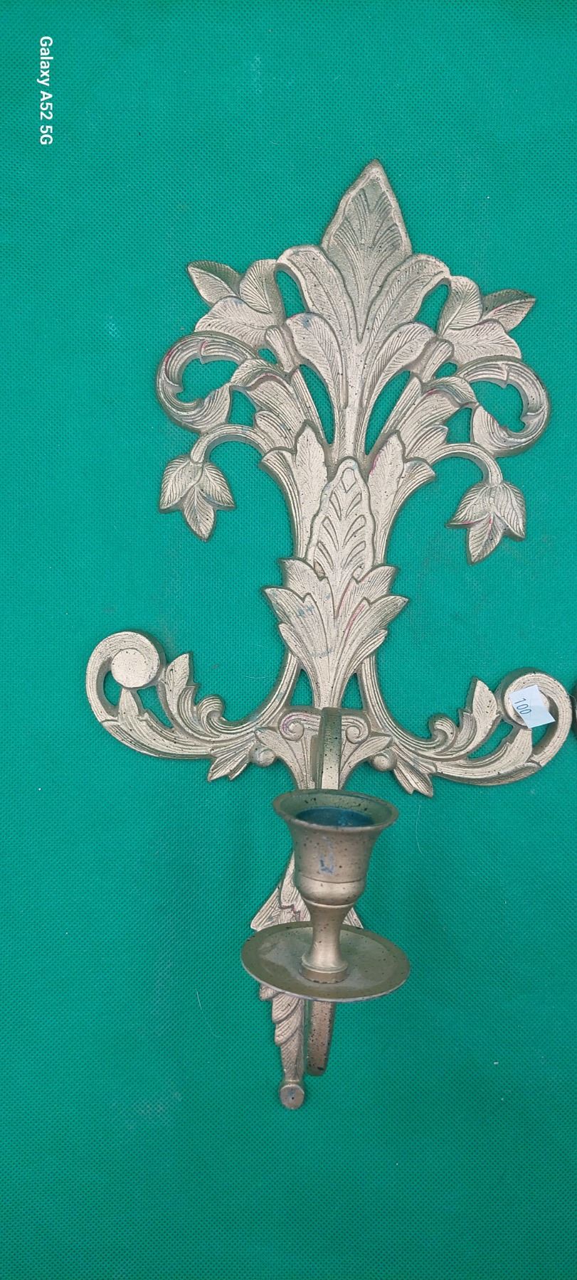 Pair of ornate metal vintage Regency candlestick wall sconces, each approx 15"x8"