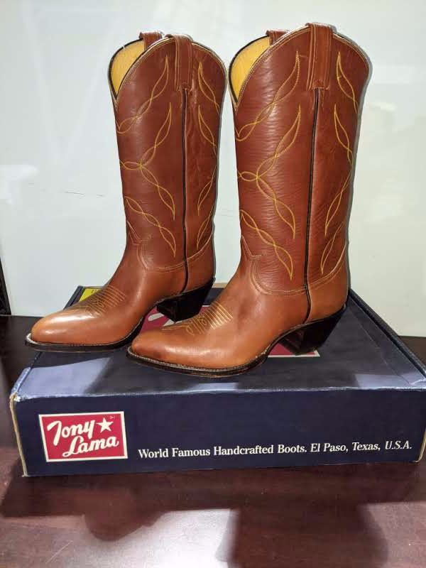 Pair of tony lama rust pointed toe cowboy boots size 7 (NOS)