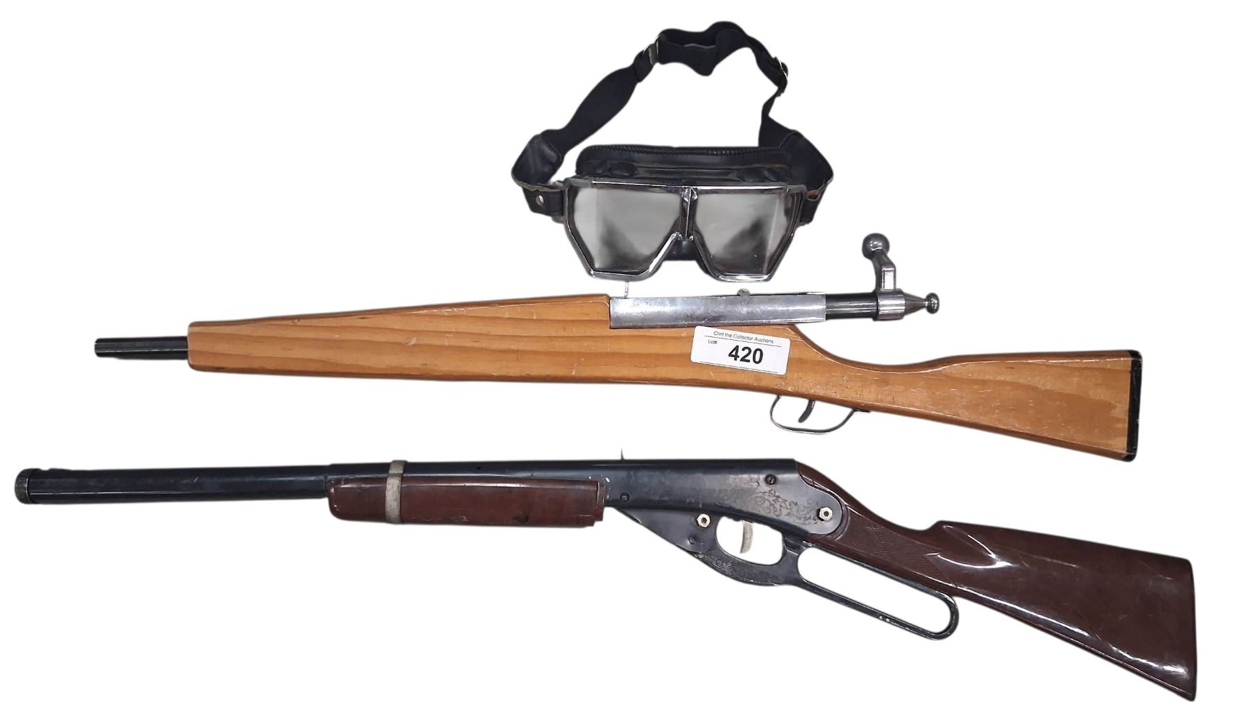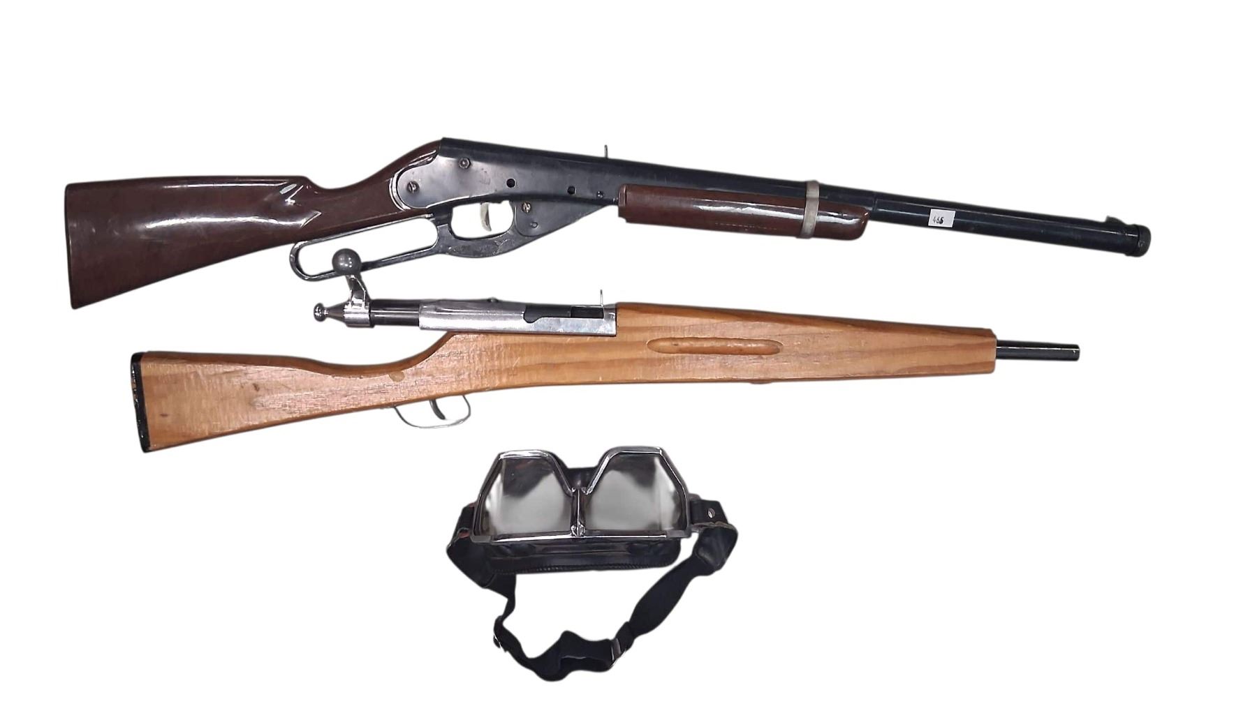 Pair of toy guns and pair of goggles