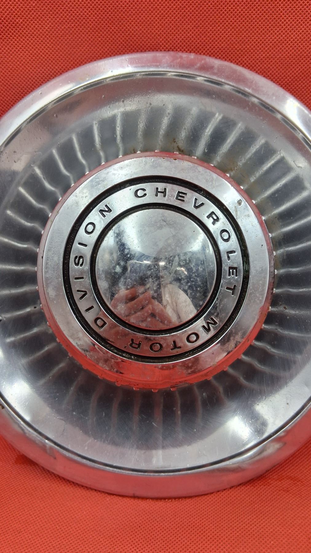 Pair of vintage Chevrolet Motor Division rally wheel centre caps