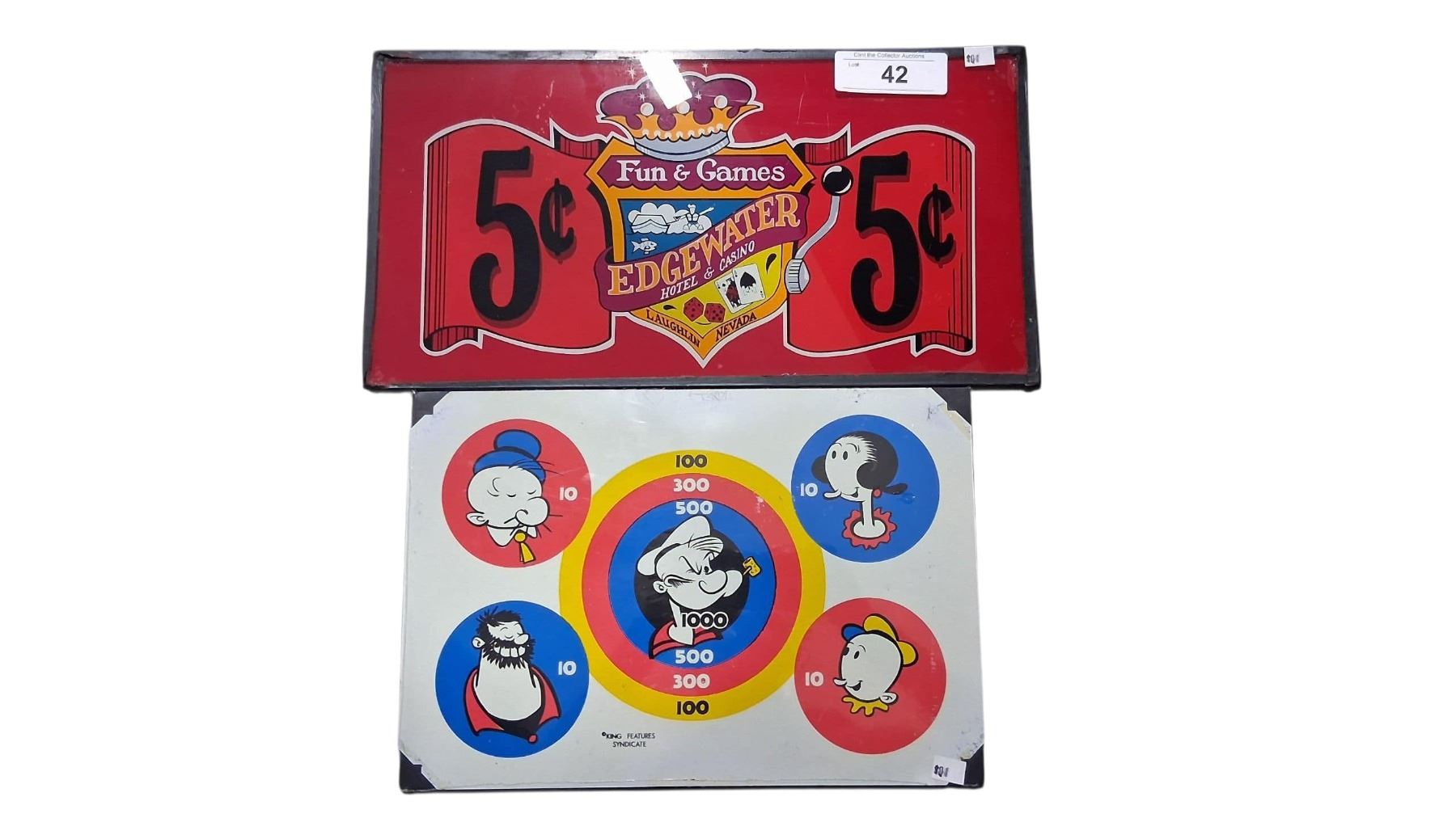 Pair of vintage plates, Casino is glass 16"x8", Popeye 13"x9"