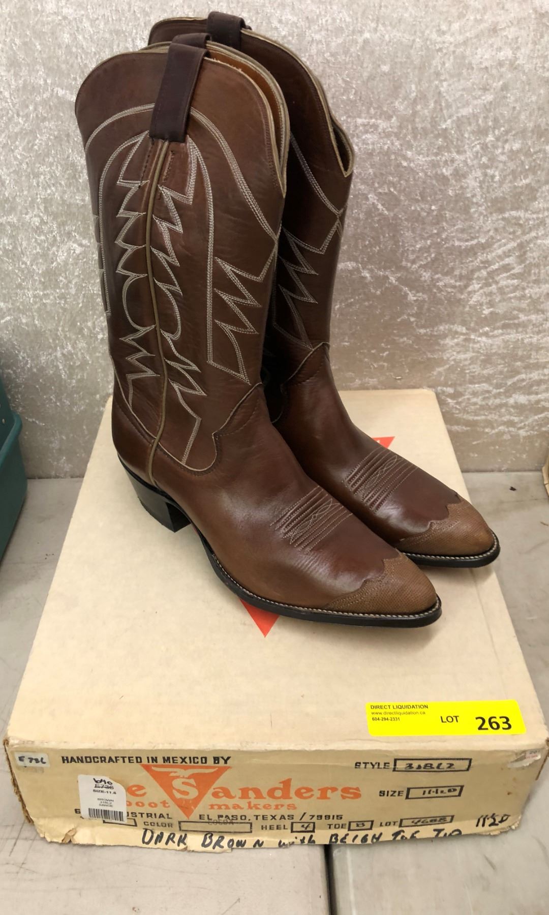 Pair sanders dark brown w/ beige toe tip coco cowboy boots size 11 1/2 (NOS)