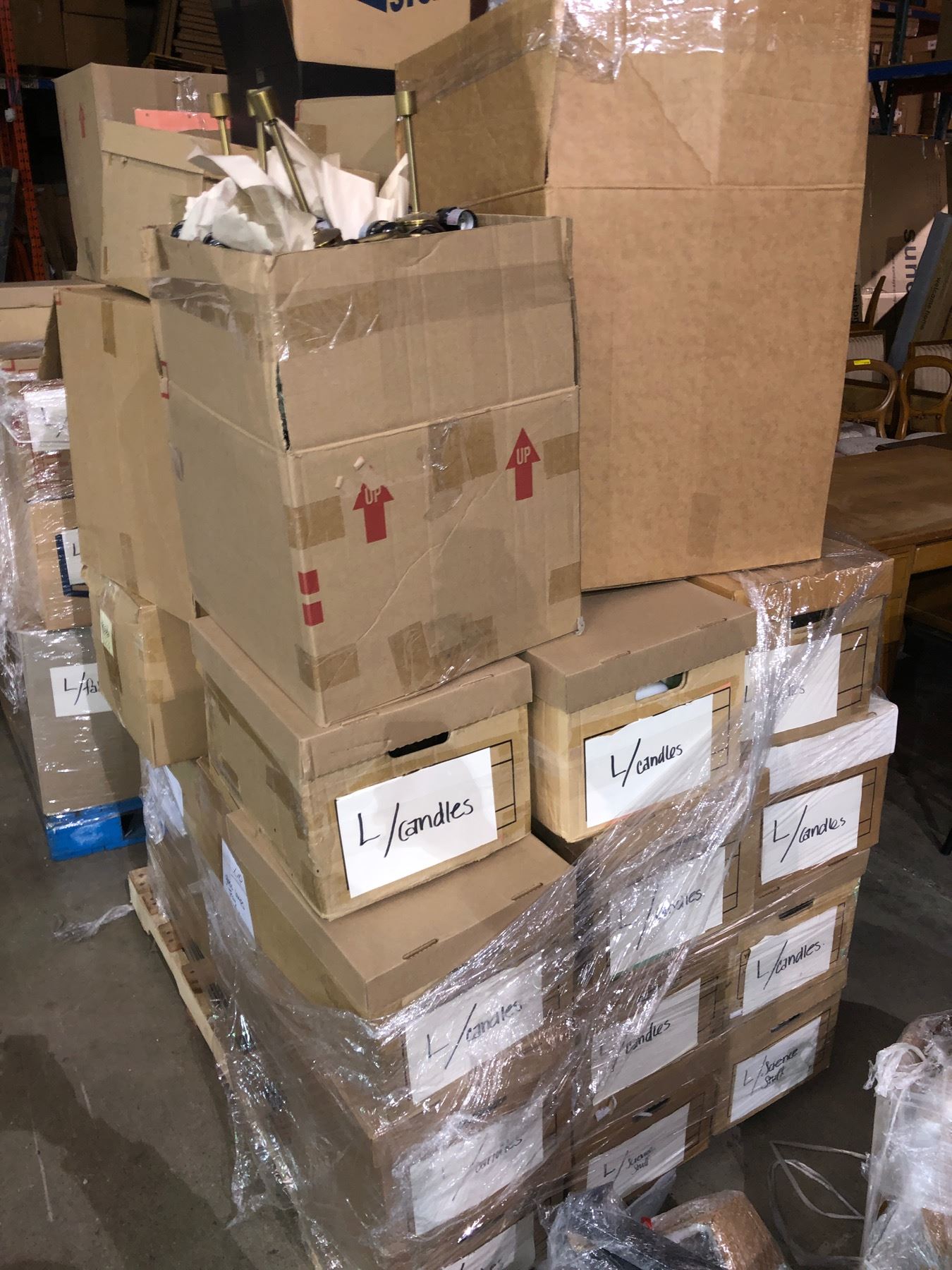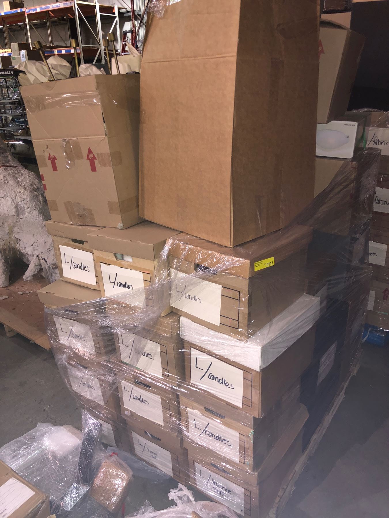 Pallet full of assorted candles/Light fixtures/Miscellaneous set-dec decoration/ Christmas decoration/ hat stands etc