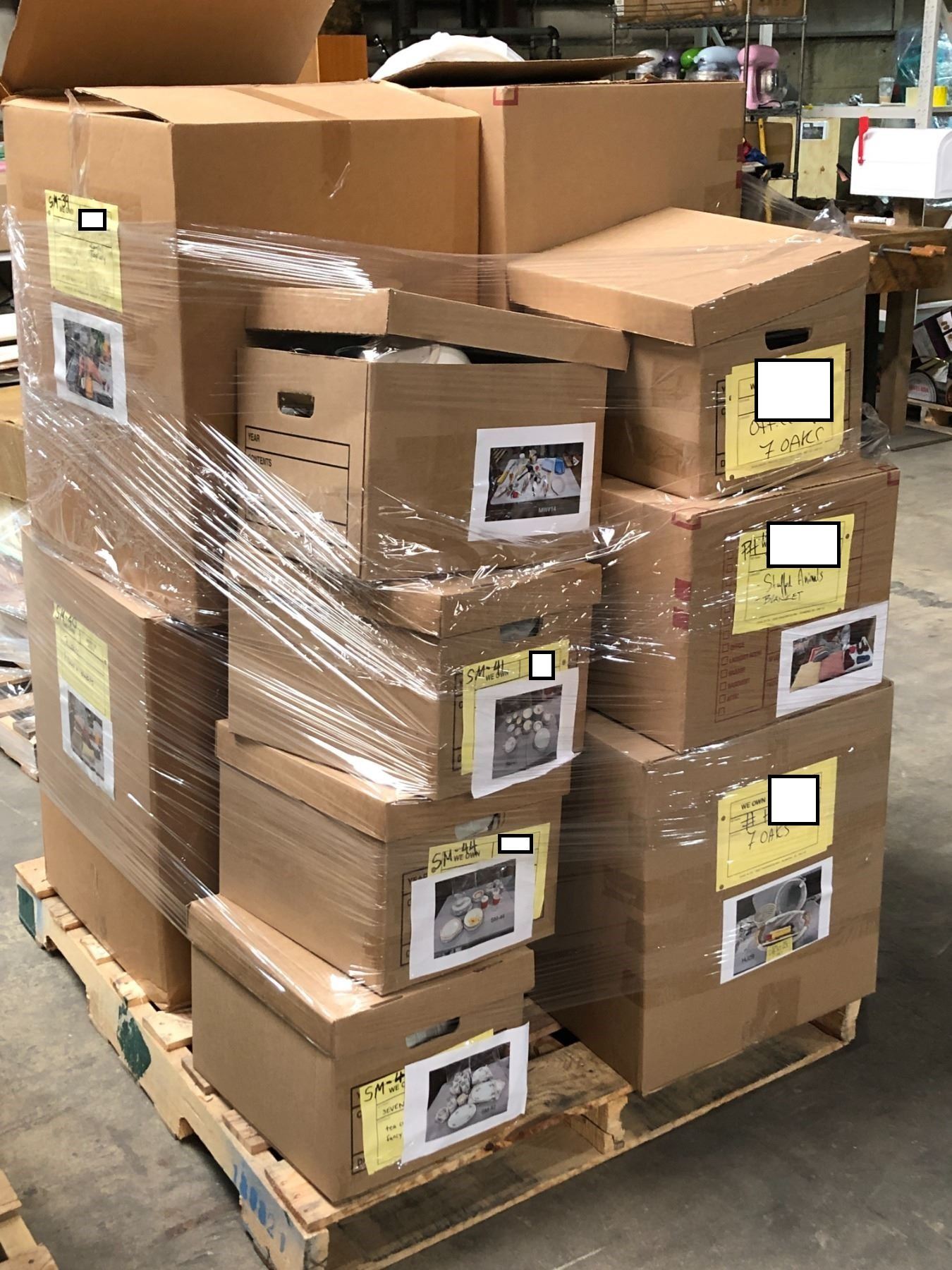 Pallet full of misc. set dec items in boxes - includes large group of kitchenware/ household goods/ kitchen appliances/ office supplies etc. MUST TAKE ALL