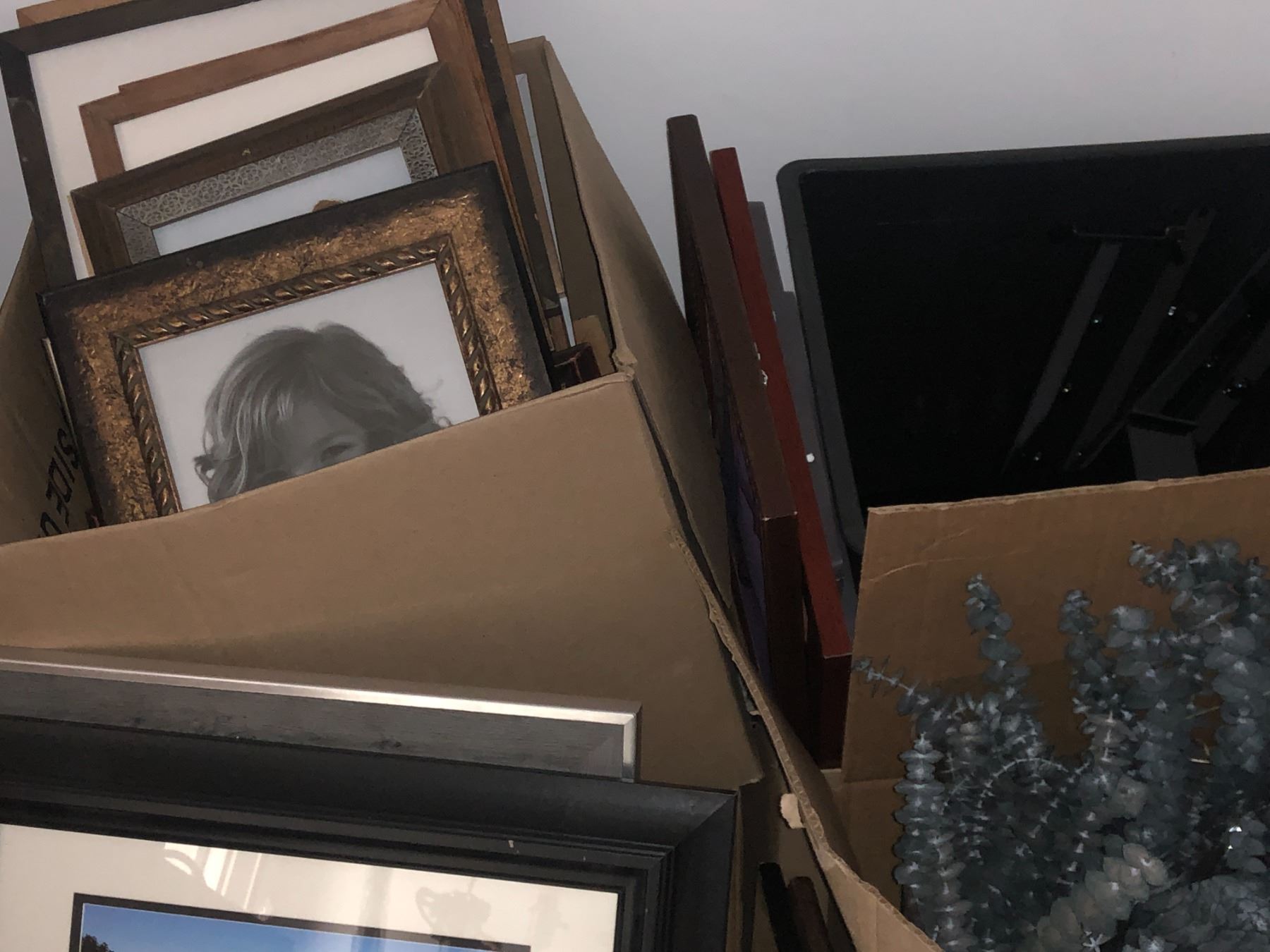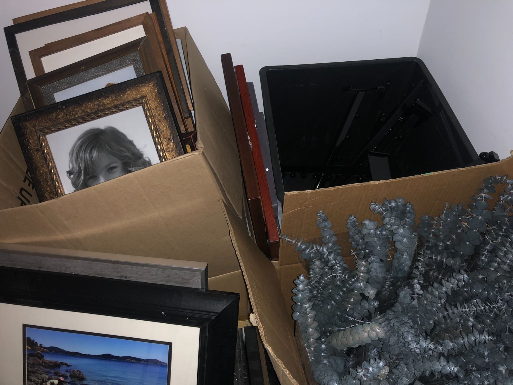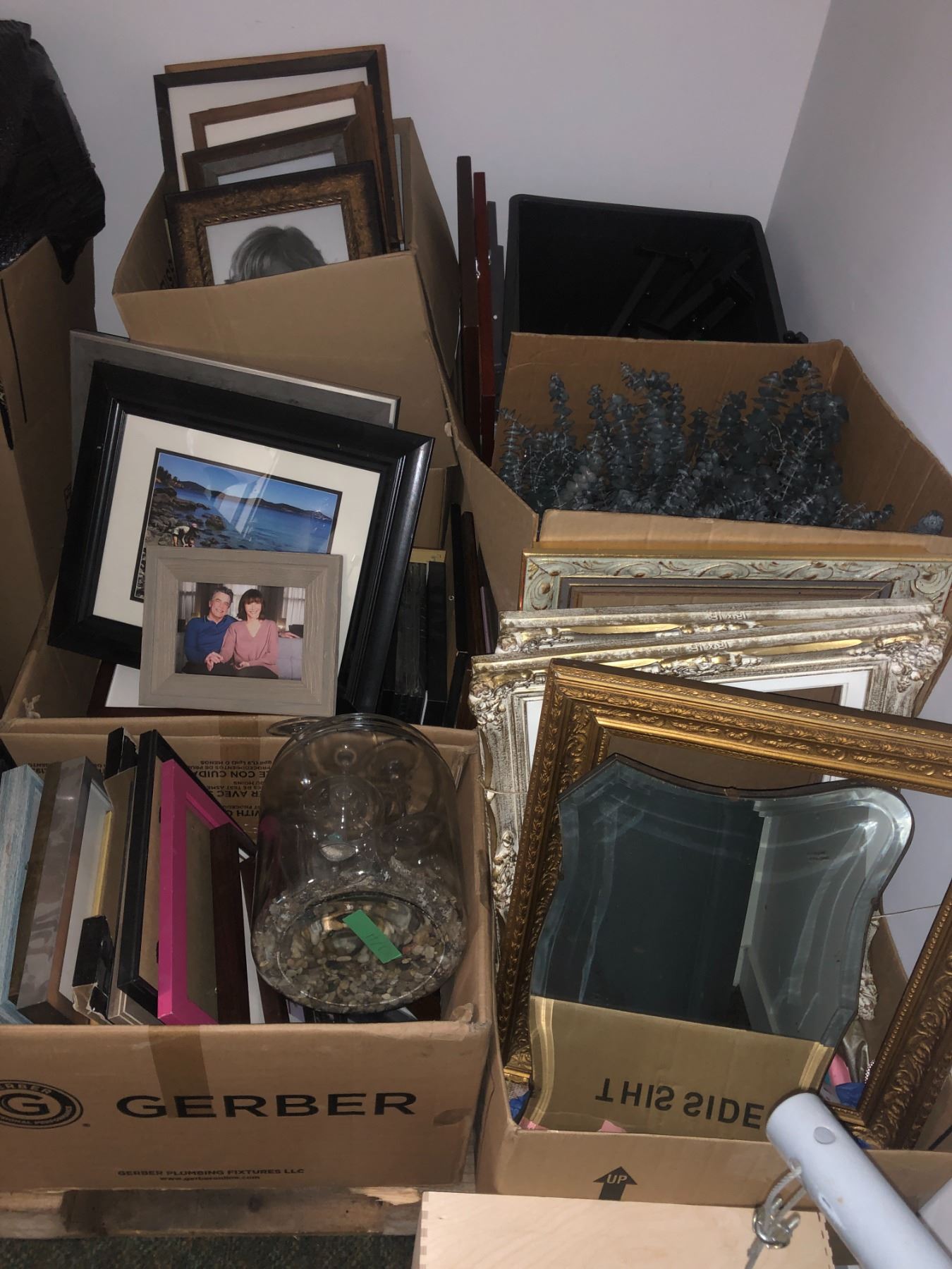Pallet lot of approx. 8 boxes of assorted pictures/ picture frames/ artificial plants/ misc. househo