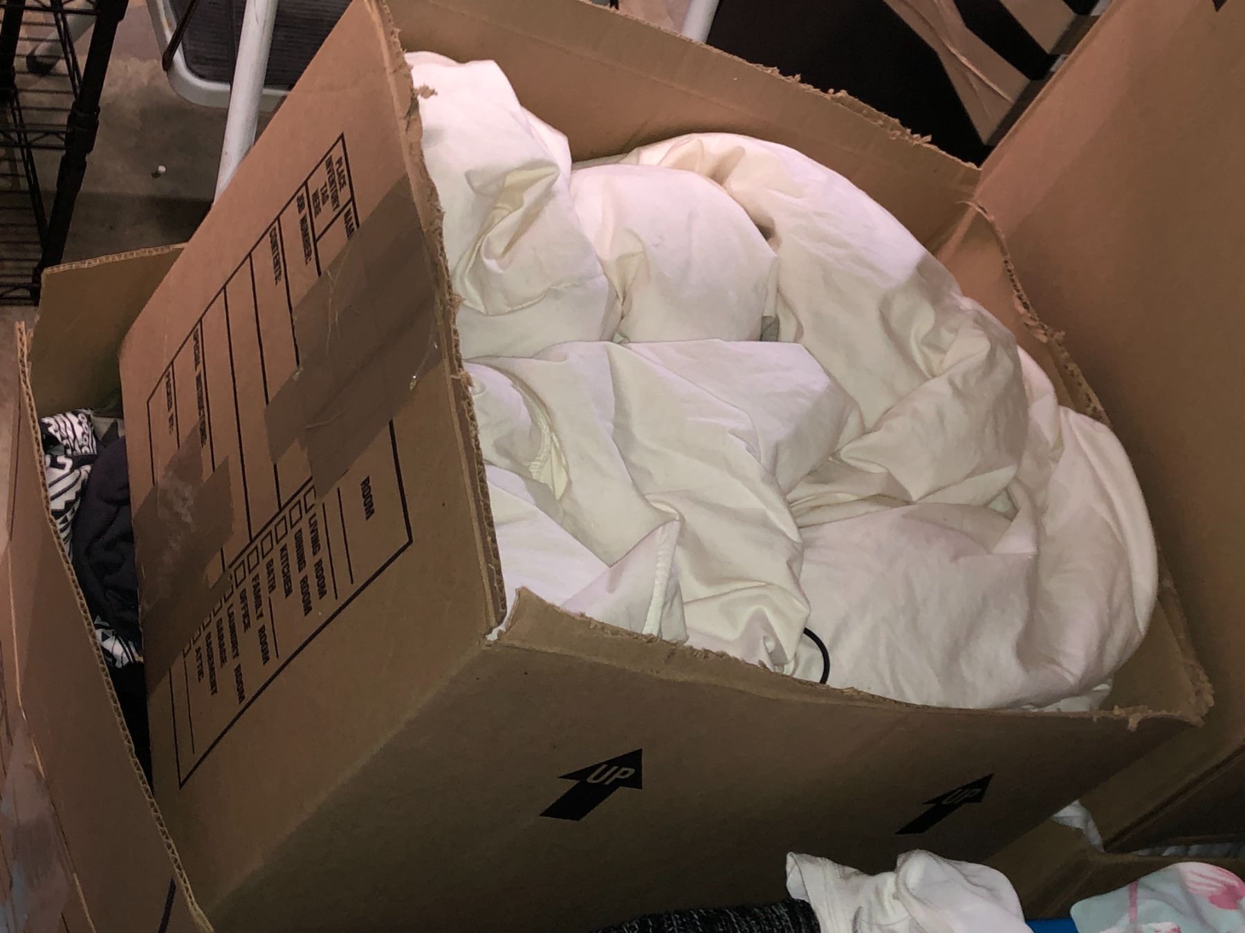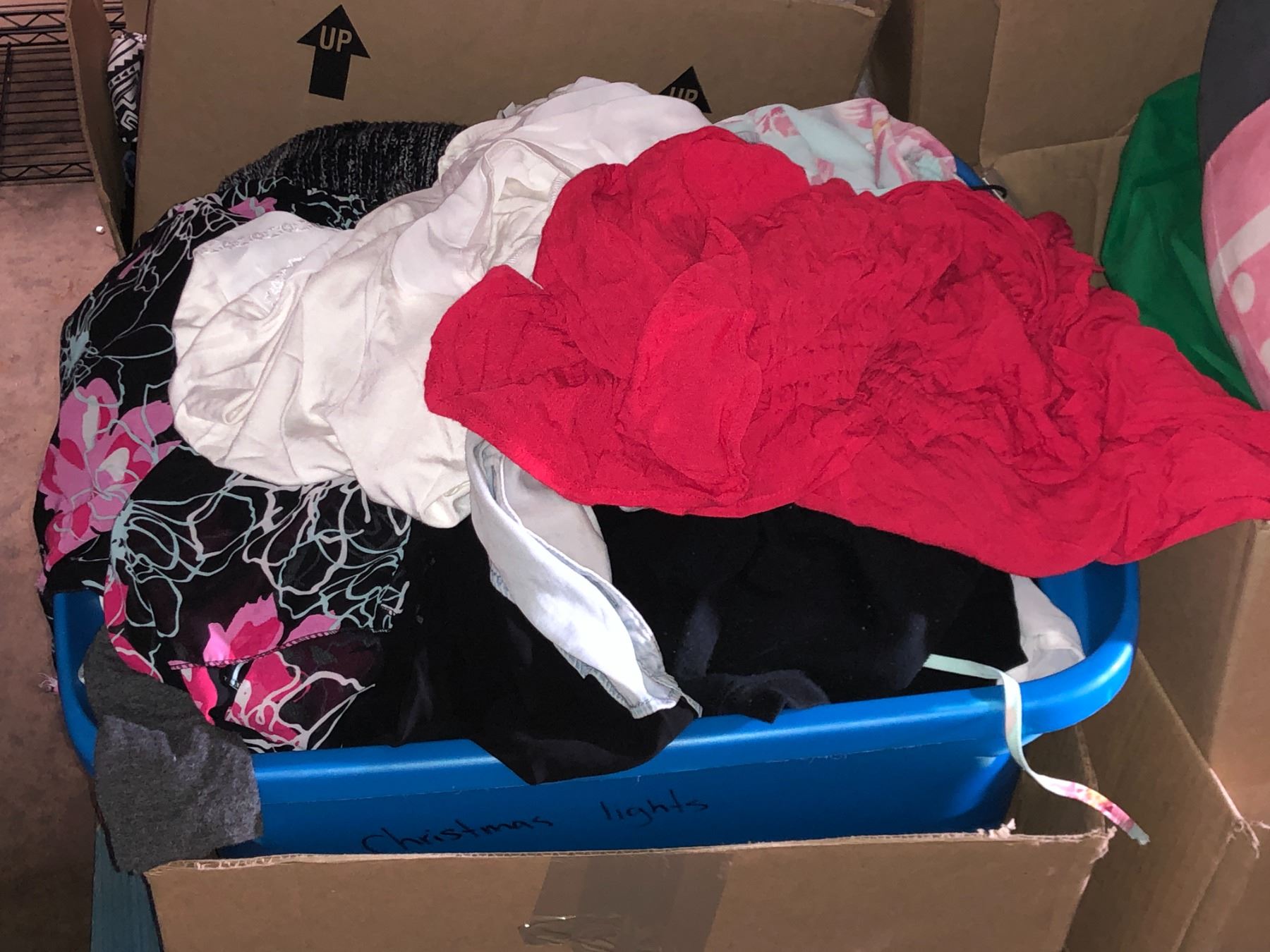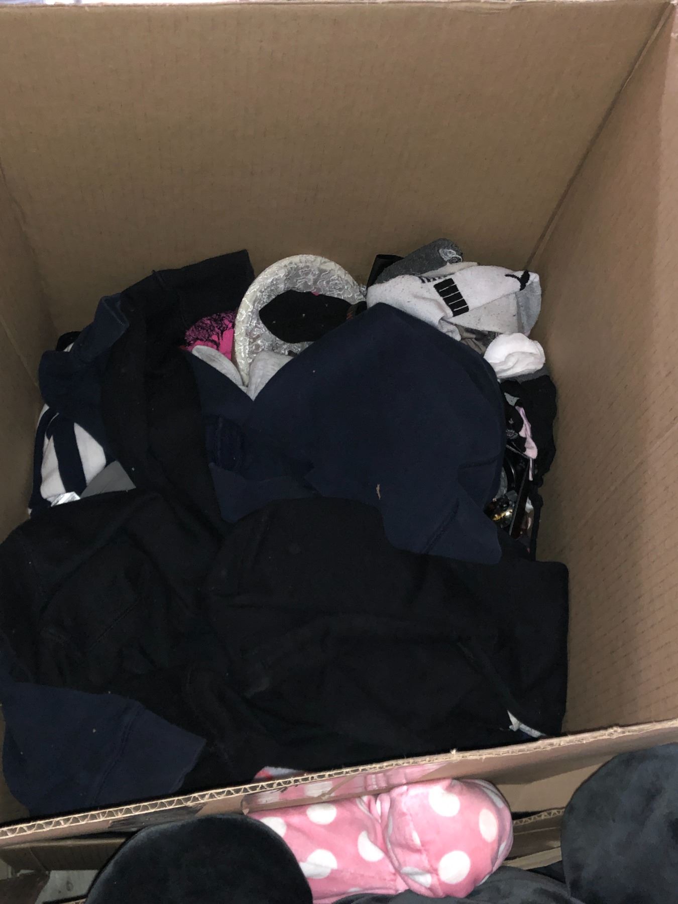 Pallet lot of assorted clothes & misc- includes bedding / shirts / Disney squishmallows etc