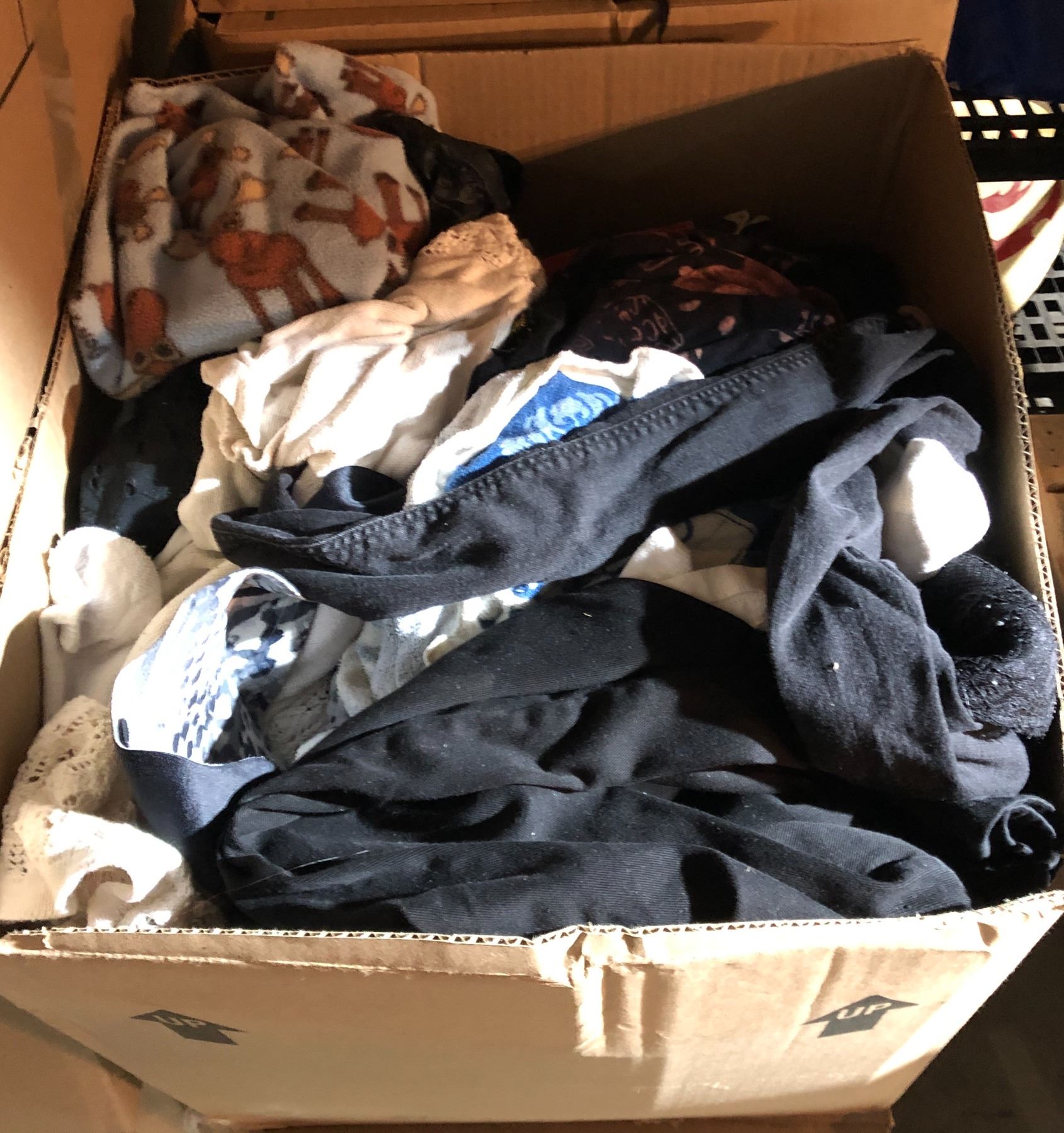 Pallet lot of assorted clothes & misc - includes lingerie / jeans / shirts etc