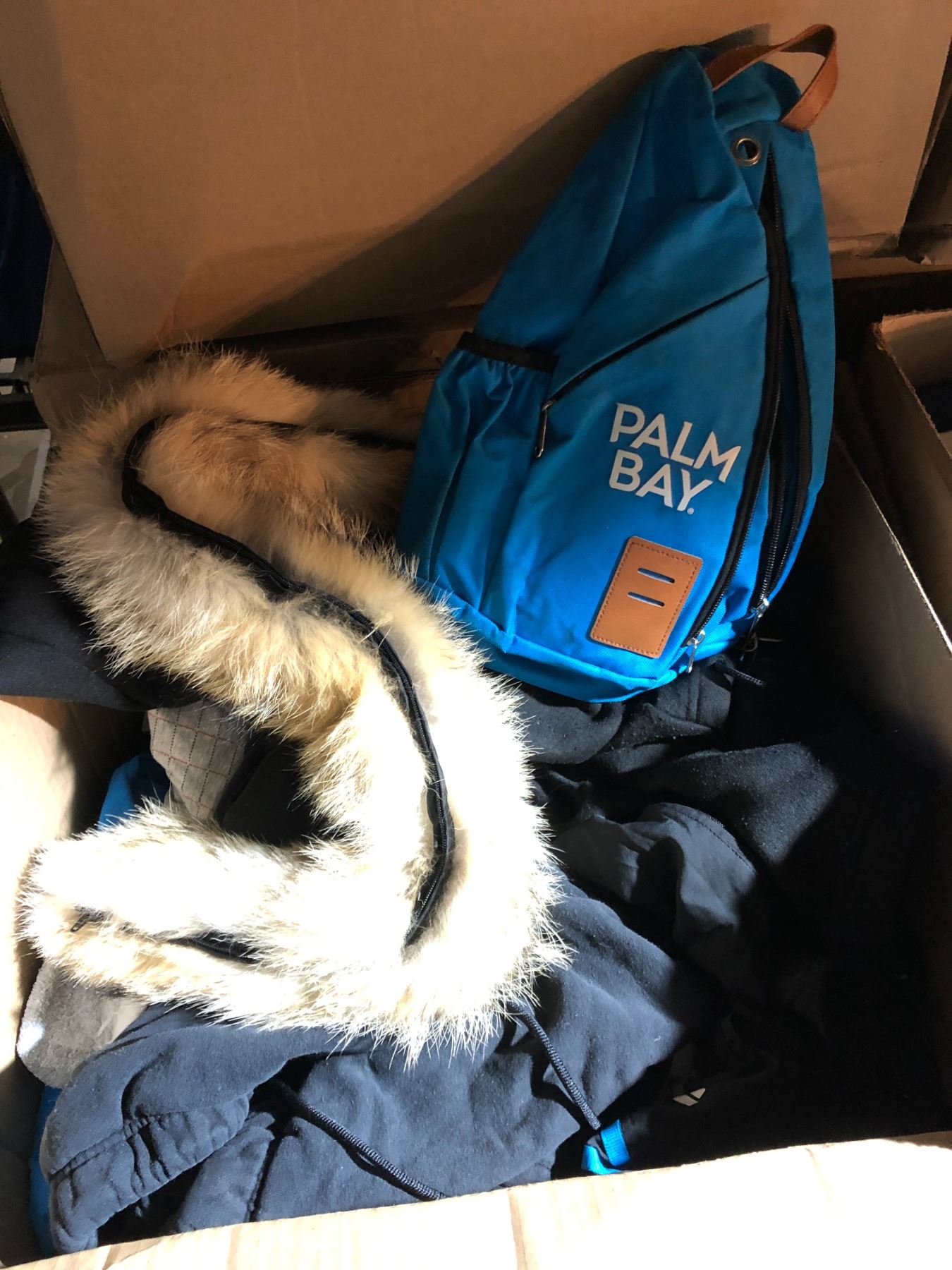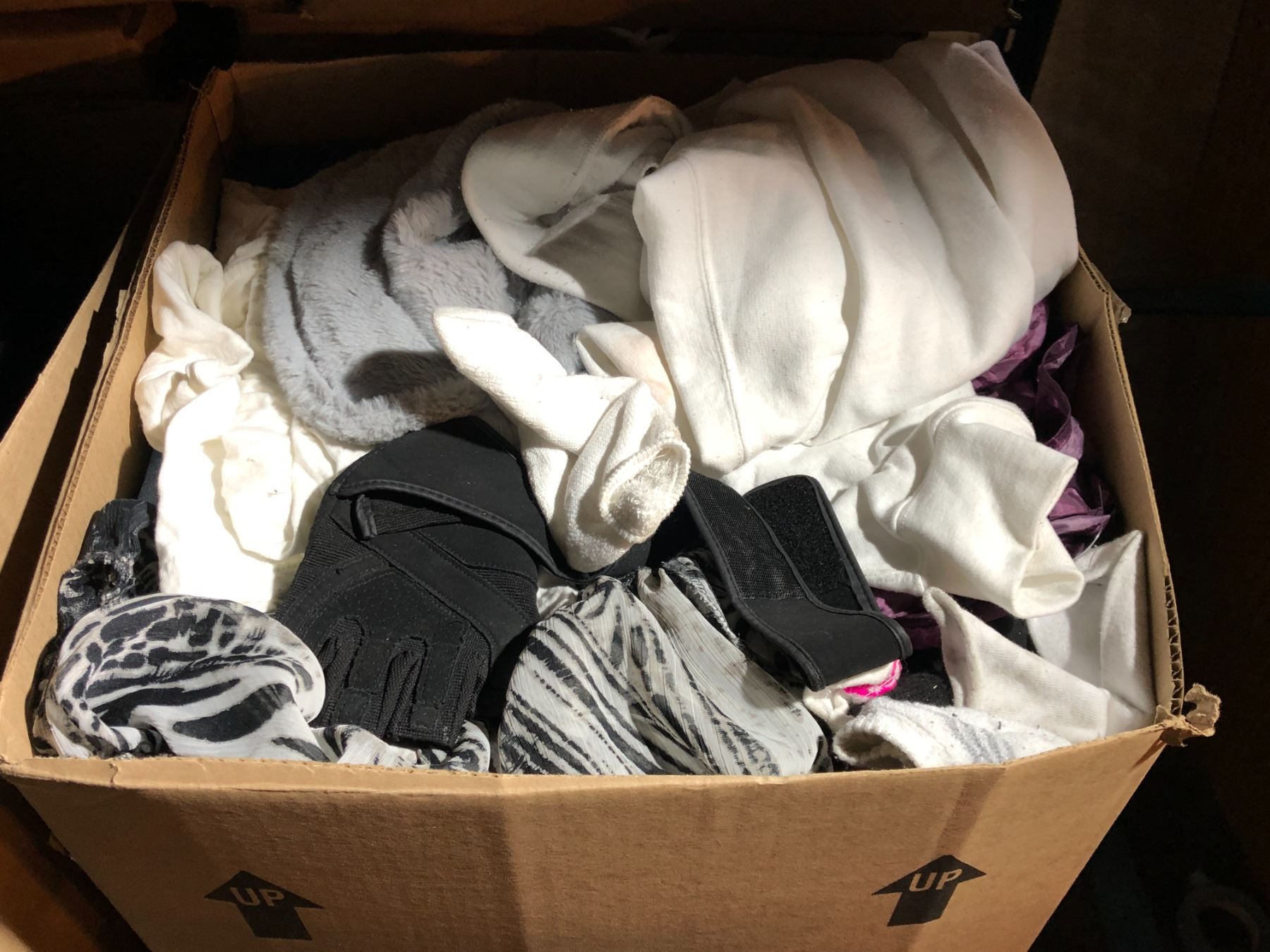 Pallet lot of assorted clothes & misc - includes shirts / pants / bags / etc