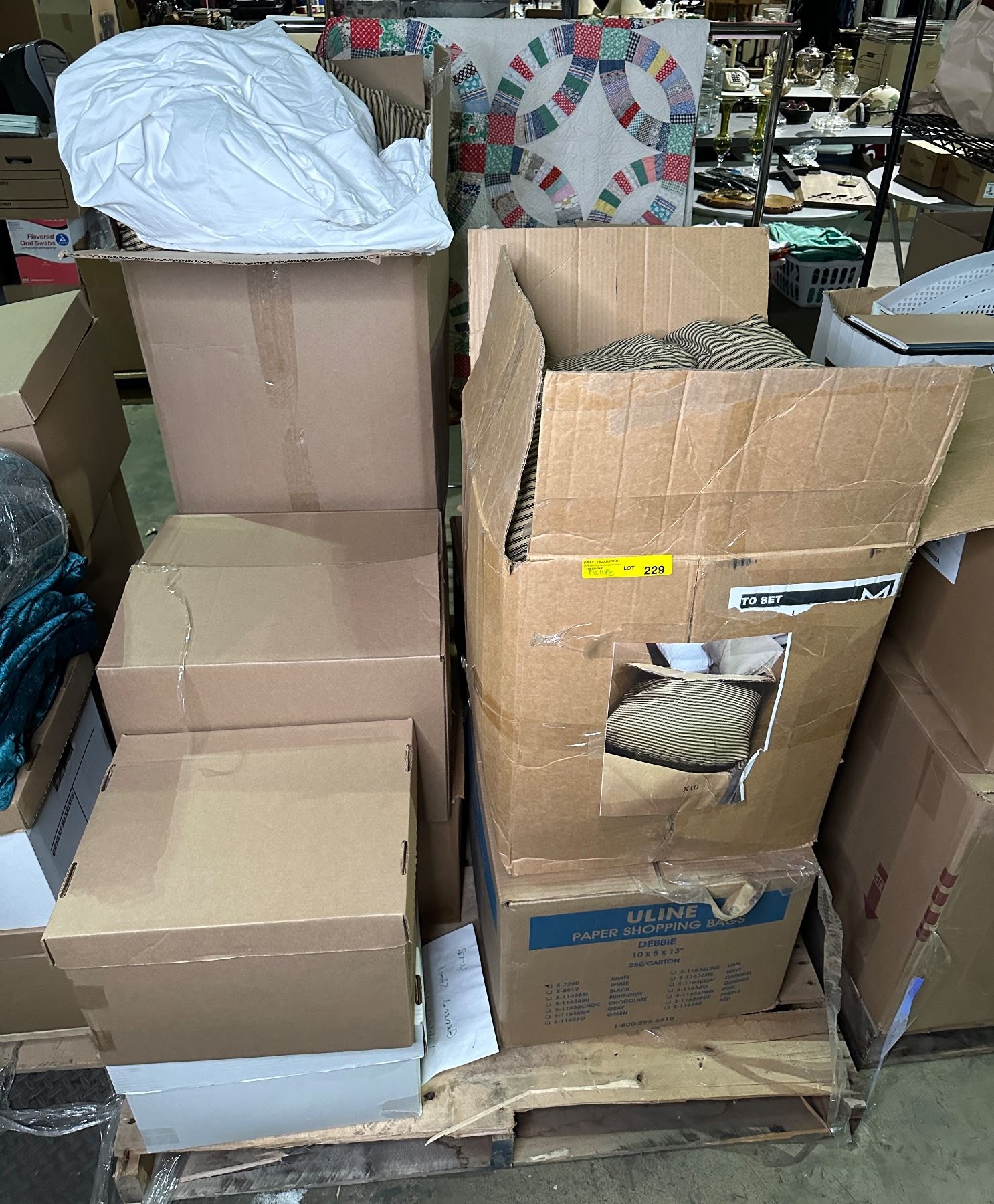 Pallet lot of misc items including - pillows, bedding, sheets/curtains, etc...