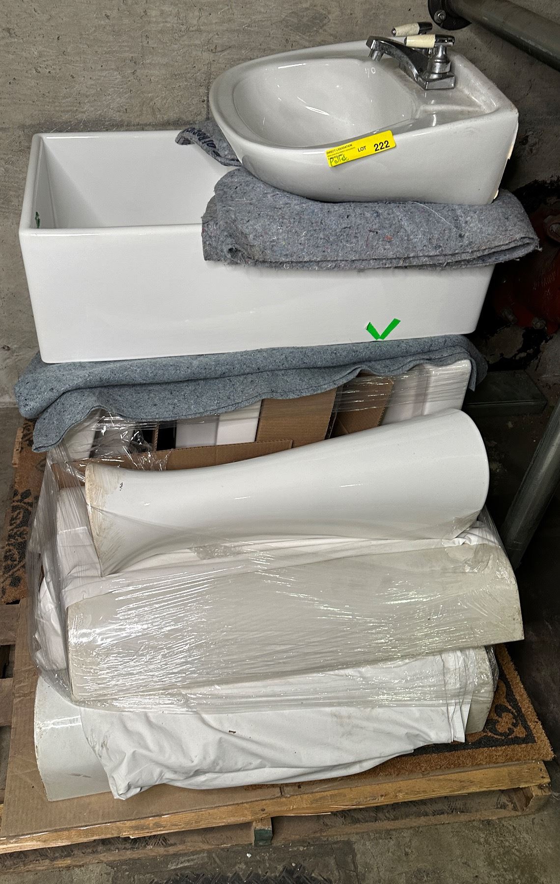 Pallet lot of misc items including - sinks & other misc bathroom equipment