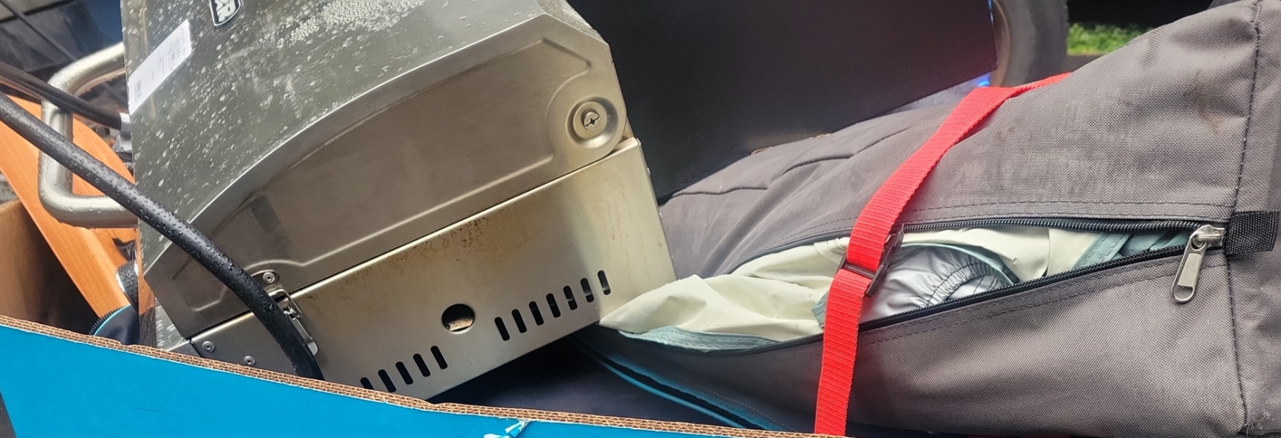 As is. Includes grill, canopy.