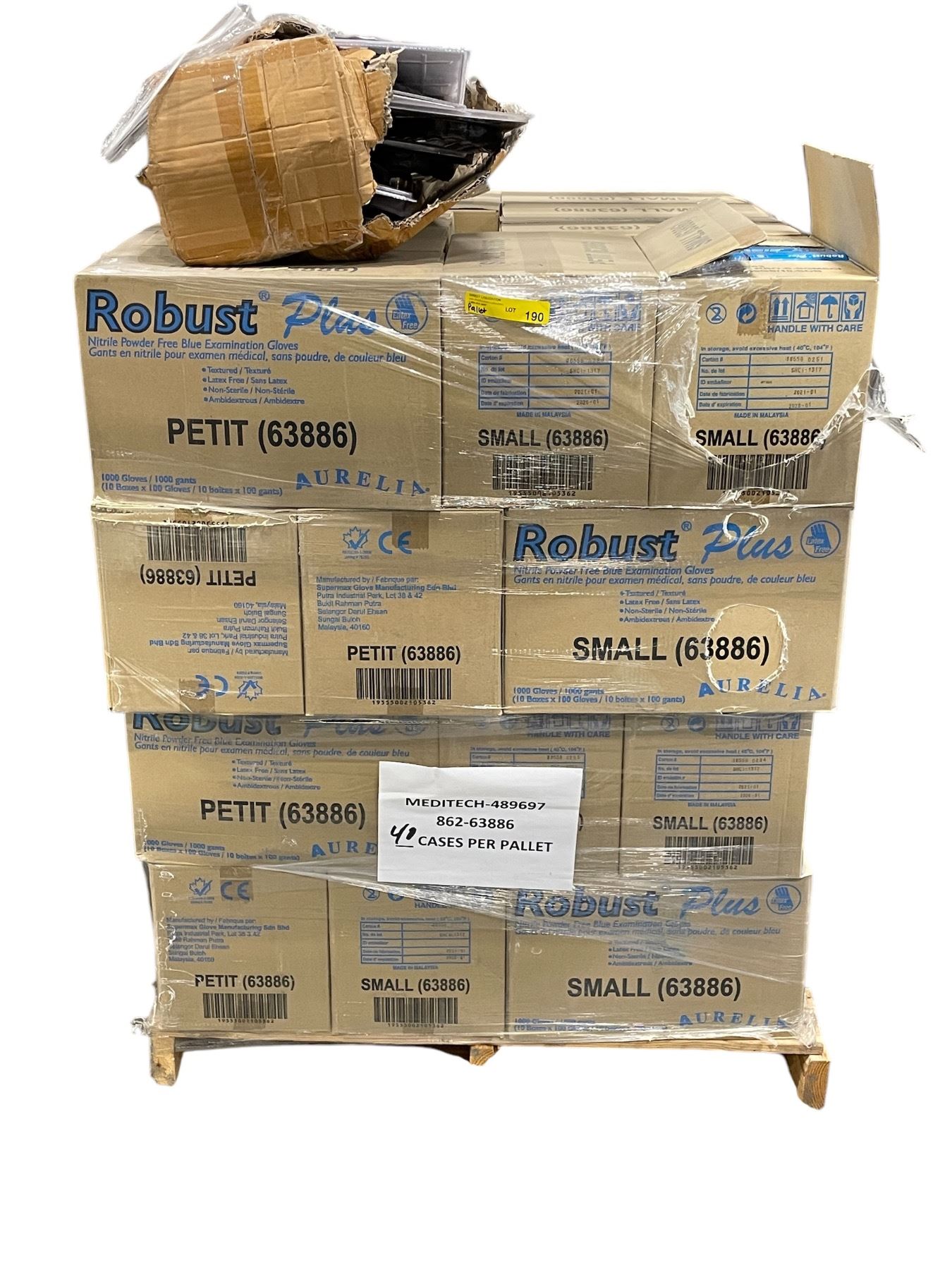 Pallet of Robust Plus Nitrile Powder Free Blue Examination Gloves (1000 Gloves - 10 Boxes x 100 Gloves PER BOX) & Box of Lawn & Gardening Torch
