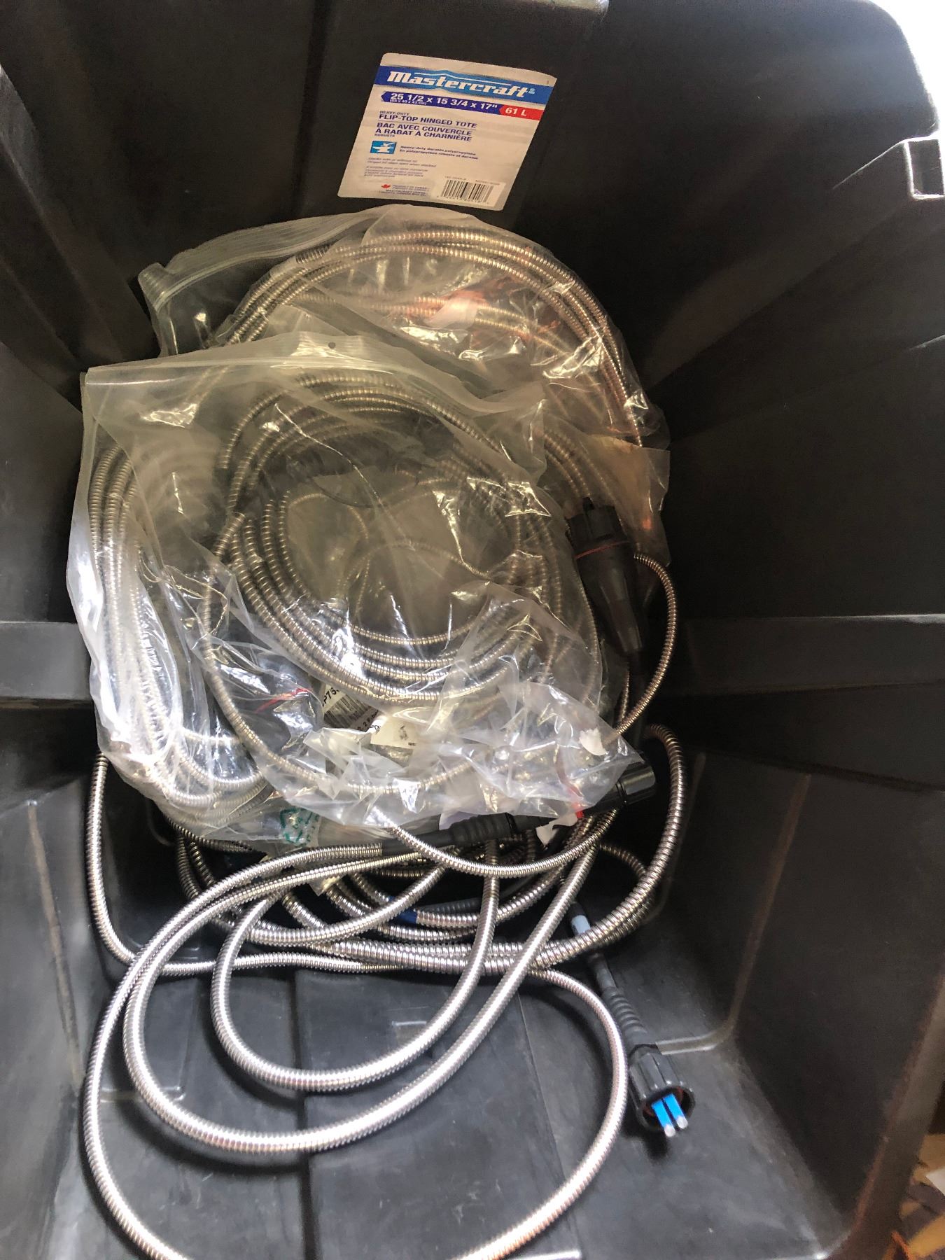 Pallet of misc. telecom supplies - includes connectors/ lighting control box/ armoured cables etc.