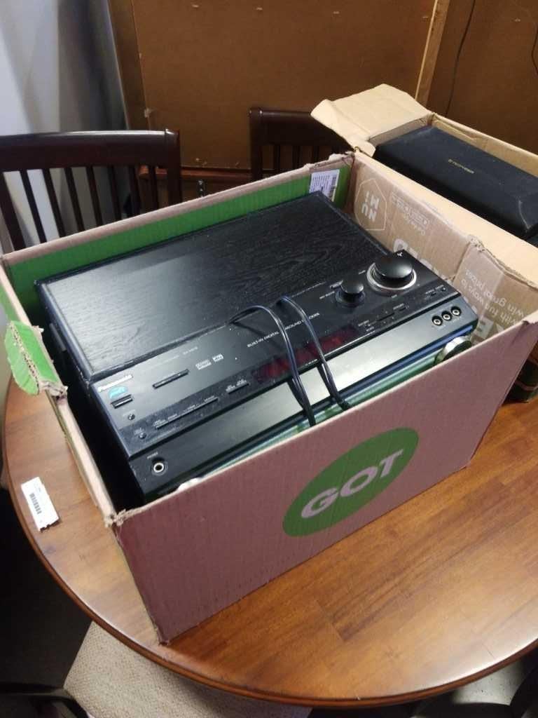 Panasonic SA HE 75 stereo receiver, and set of pioneers surround sound speakers