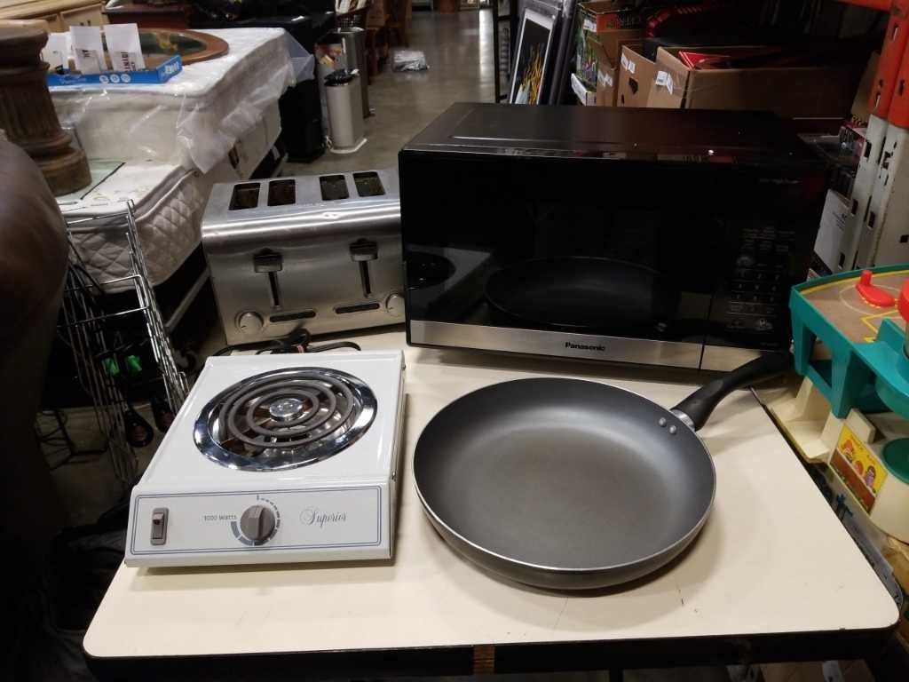 Panasonic microwave, stainless toaster 1000 watt electric element all working and frying pan