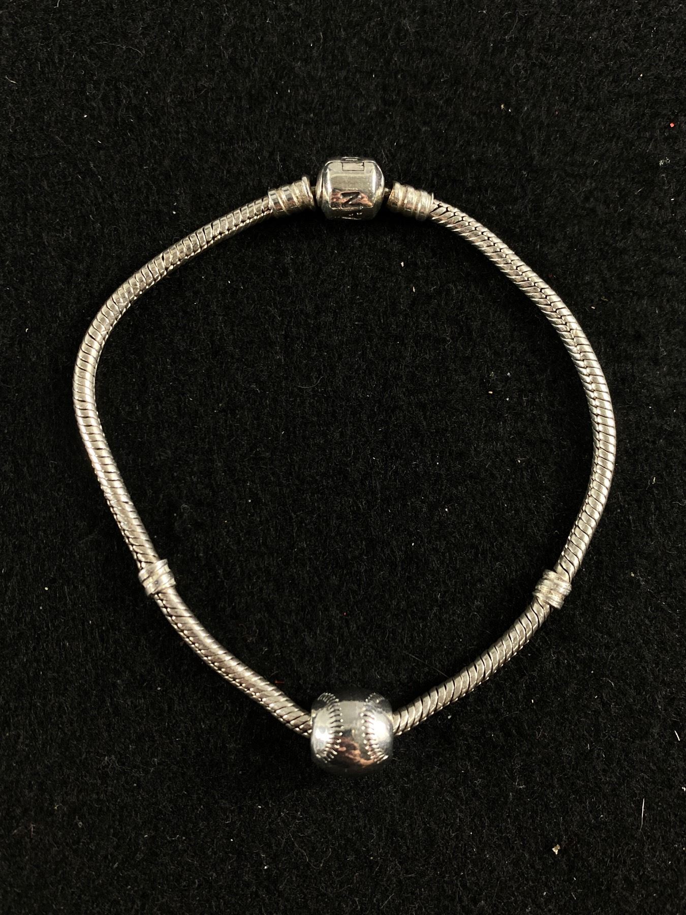 Pandora Sterling Silver 925 Bracelet 8.5" With Charm - 18.3 Grams - Marked & Tested
