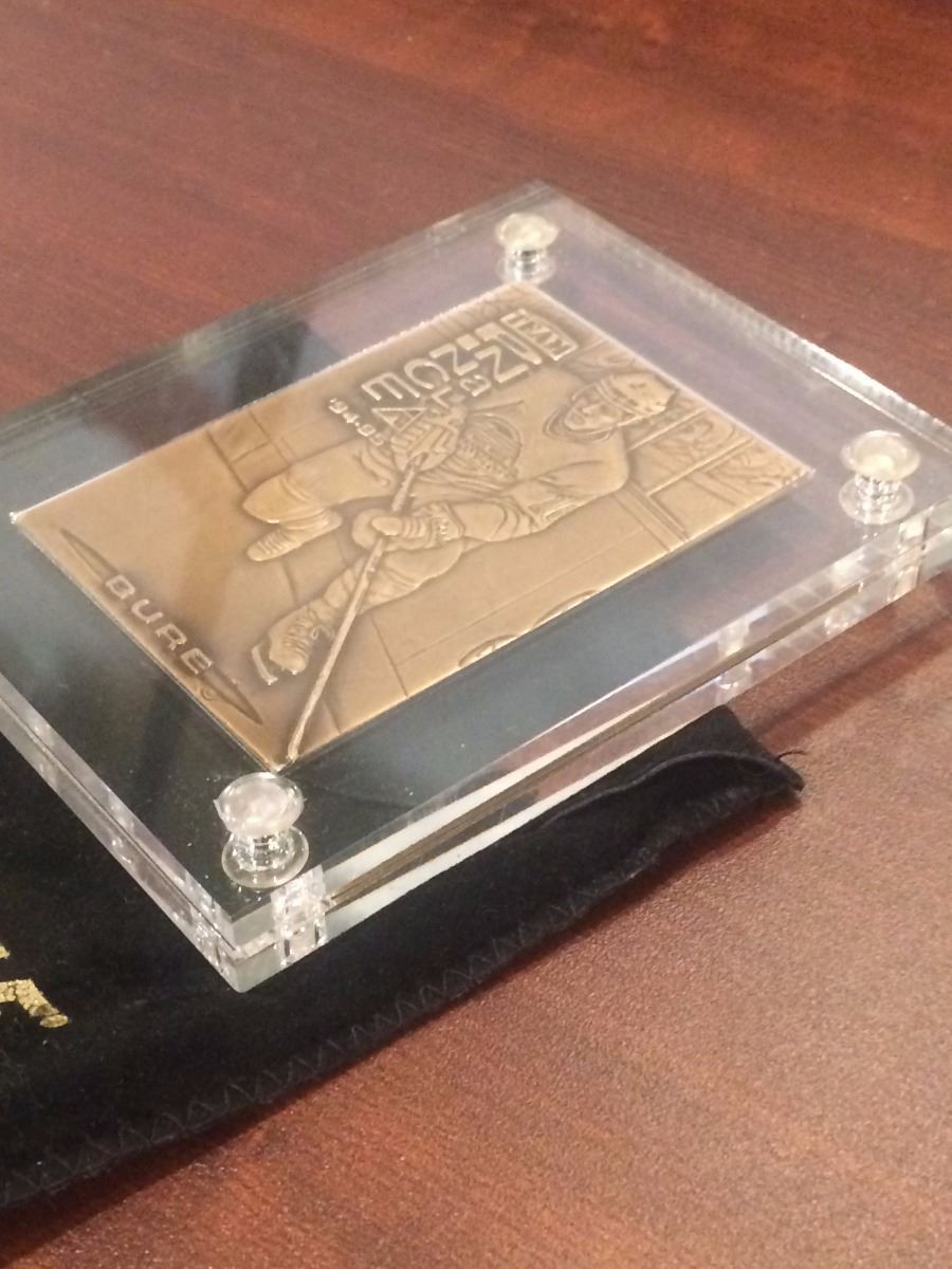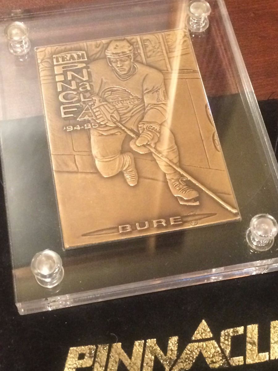 Neely (in Bruins gear) on one side, and Bure (in Canucks gear) on the other side. Mint condition. Includes protective case.