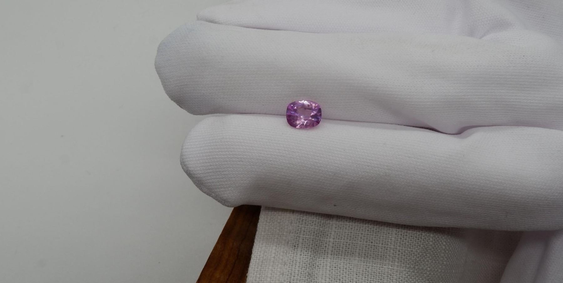 loose faceted precious sapphire, brand new without tags from Sri Lanka. GEMSTONE TYPE: Genuine Sri Lanka, Ceylon sapphireRECOMMENDED JEWELRY SETTINGS: Solitaire Ring, Women Rings, Sapphire solitaire, BraceletsCERTIFICATE: CorundumStones Mining Genuine Gem Lab report included. GIA/AGL/IGL/GRS Gem Lab reports/memos available, please specify during checkout.ORIGIN: Sri LankaCARAT SIZE: 1.44DIMENSIONS: Length 7.57 x Width 6.47 x Depth 3.65 mmSHAPE/CUT: premium handcrafted checkerboard cushion, cushion rectangular cutTREATMENTS: None (No Enhancement)COLOR/COLOUR: Pastel padparadscha-likeGIA COLOR CODE: Pi/OCLARITY: VS (eyeclean)SATURATION: 4=mstTONE: 4=mlFINISH & POLISH: excellent
