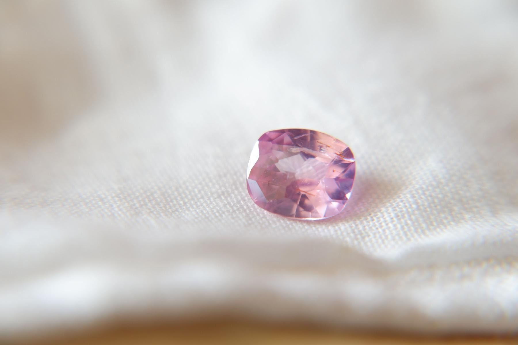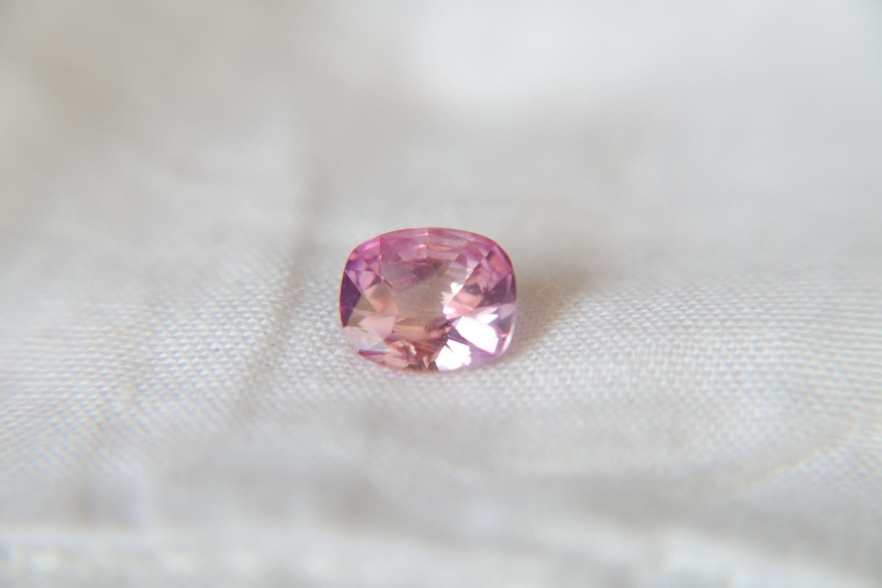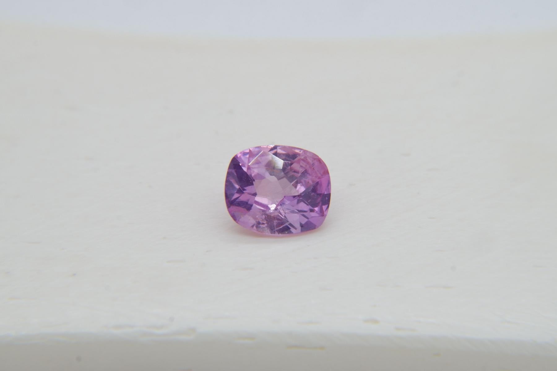 loose faceted precious sapphire, brand new without tags from Sri Lanka. GEMSTONE TYPE: Genuine Sri Lanka, Ceylon sapphireRECOMMENDED JEWELRY SETTINGS: Solitaire Ring, Women Rings, Sapphire solitaire, BraceletsCERTIFICATE: CorundumStones Mining Genuine Gem Lab report included. GIA/AGL/IGL/GRS Gem Lab reports/memos available, please specify during checkout.ORIGIN: Sri LankaCARAT SIZE: 1.44DIMENSIONS: Length 7.57 x Width 6.47 x Depth 3.65 mmSHAPE/CUT: premium handcrafted checkerboard cushion, cushion rectangular cutTREATMENTS: None (No Enhancement)COLOR/COLOUR: Pastel padparadscha-likeGIA COLOR CODE: Pi/OCLARITY: VS (eyeclean)SATURATION: 4=mstTONE: 4=mlFINISH & POLISH: excellent