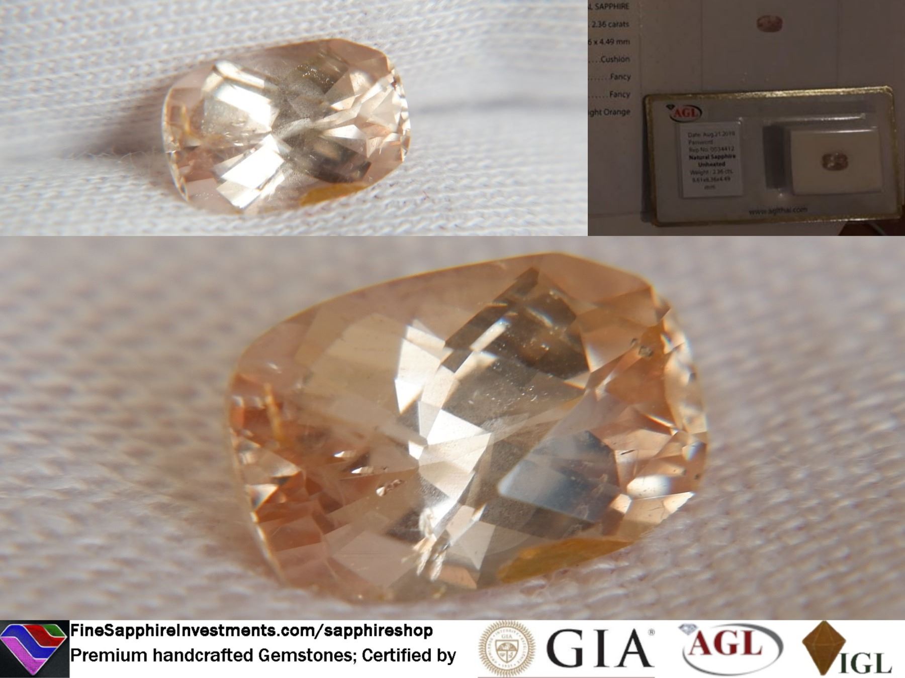 COLOR/COLOUR: Peach Sapphire, unheated, premium cut | AGL