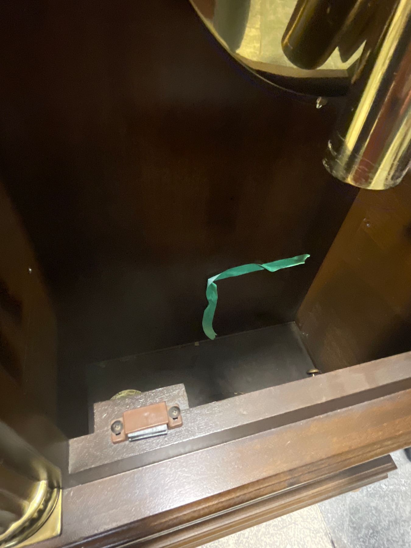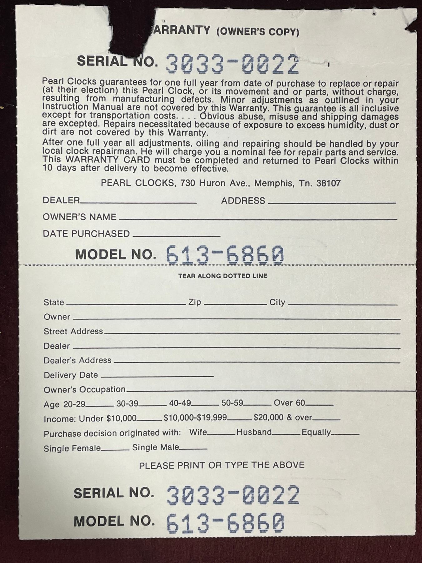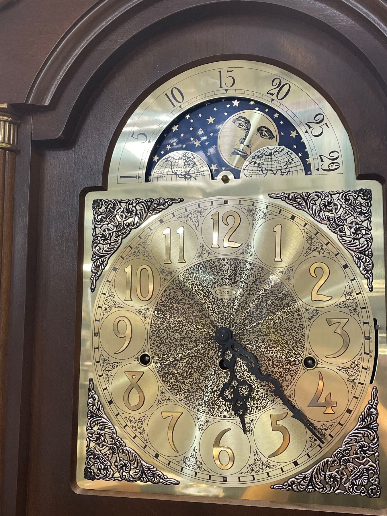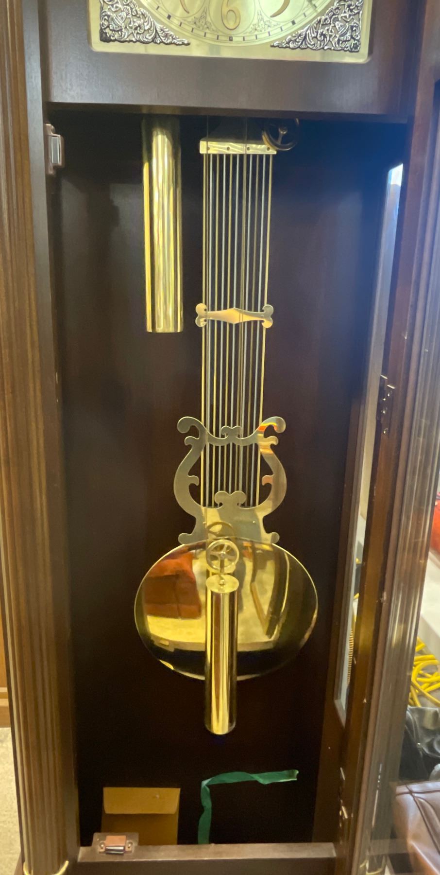 Pearl Grandfather Clock w/ paperwork & keys - approx 19 1/2in W x 12in L x 7ft tall