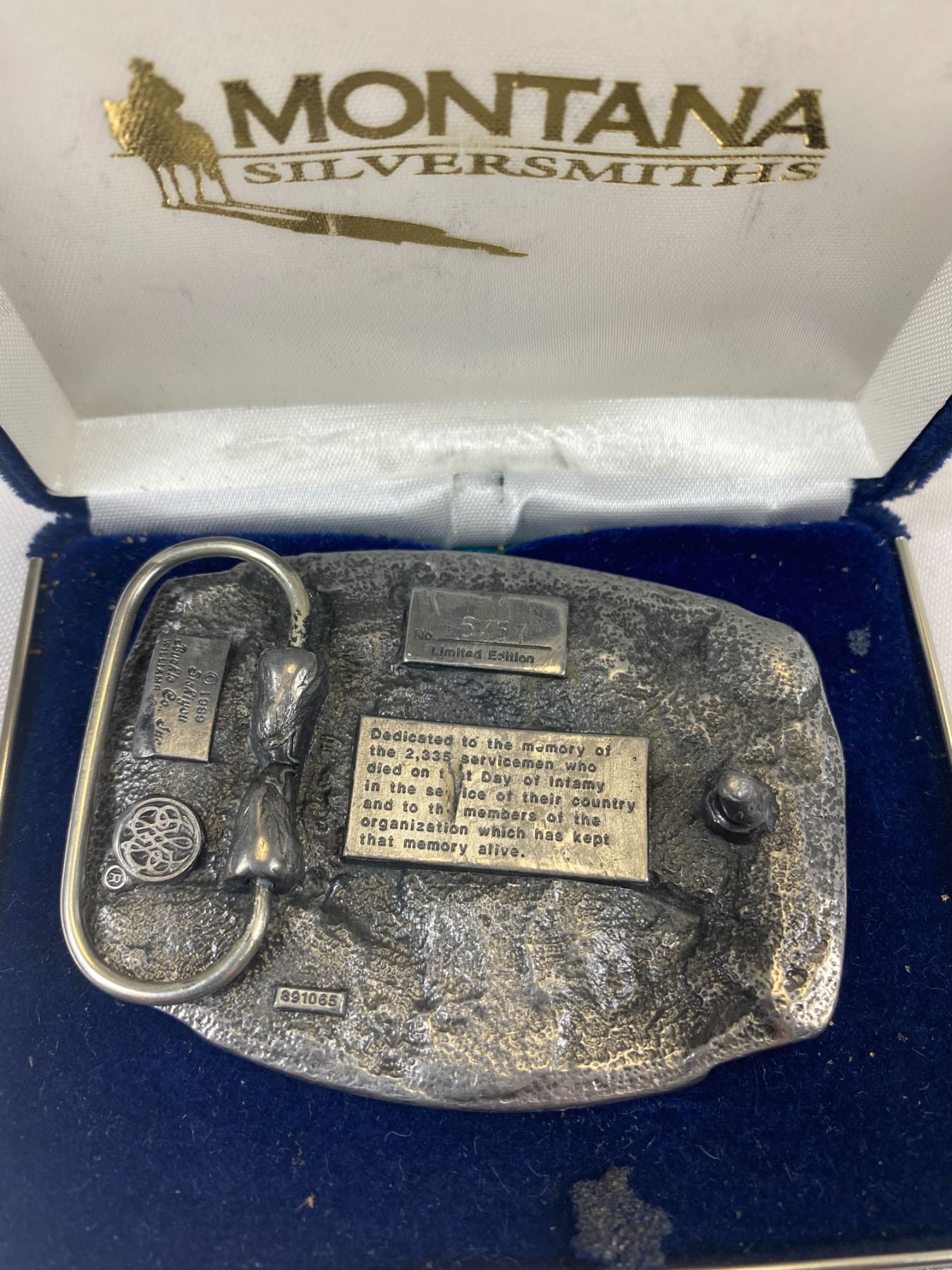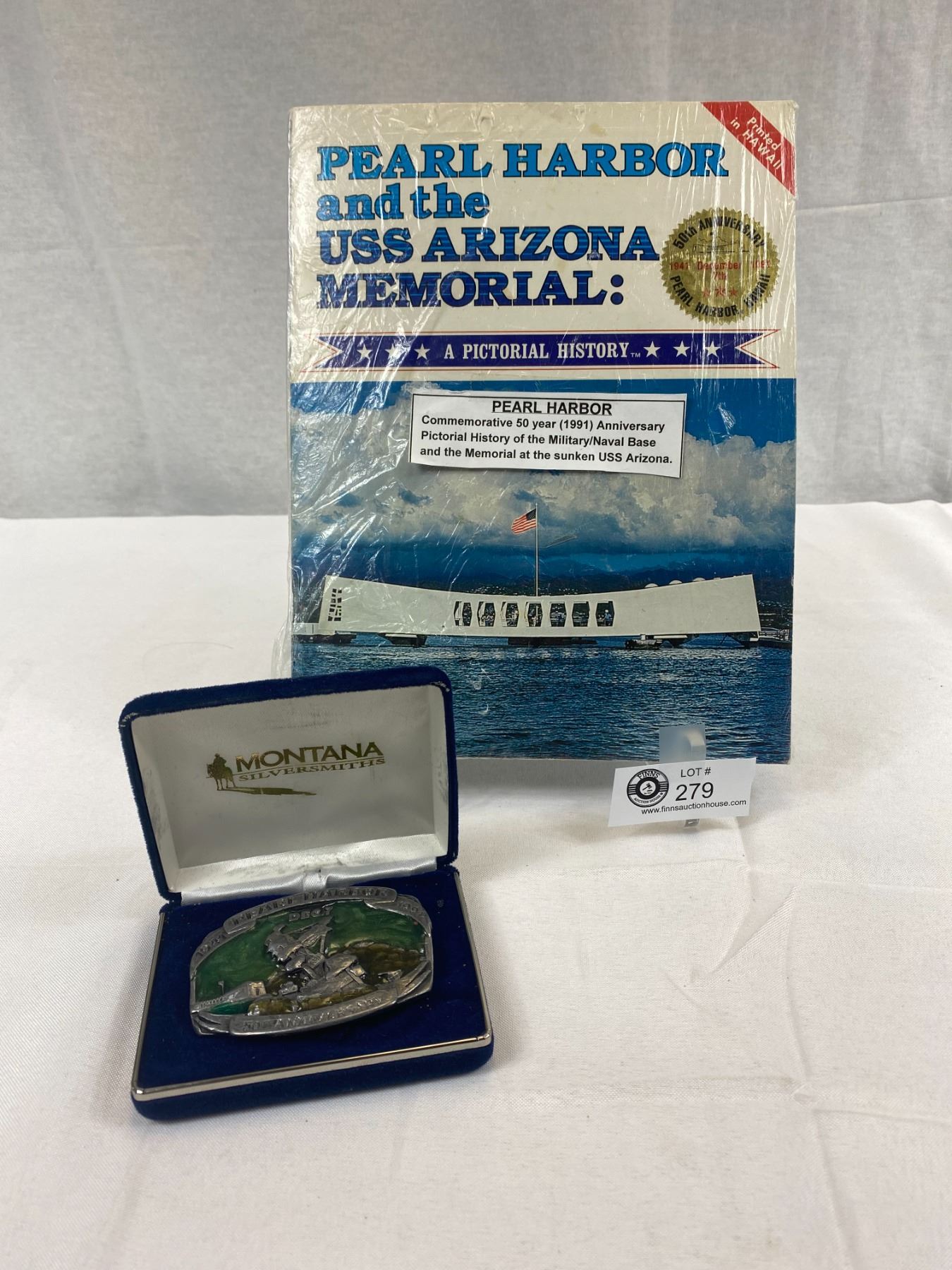 Pearl Harbor 50th Anniversary Limited Edition Book And Very Rare Limited Edition Numbered (5757) 50th Anniversary Pewter And Enamel Belt Buckle
