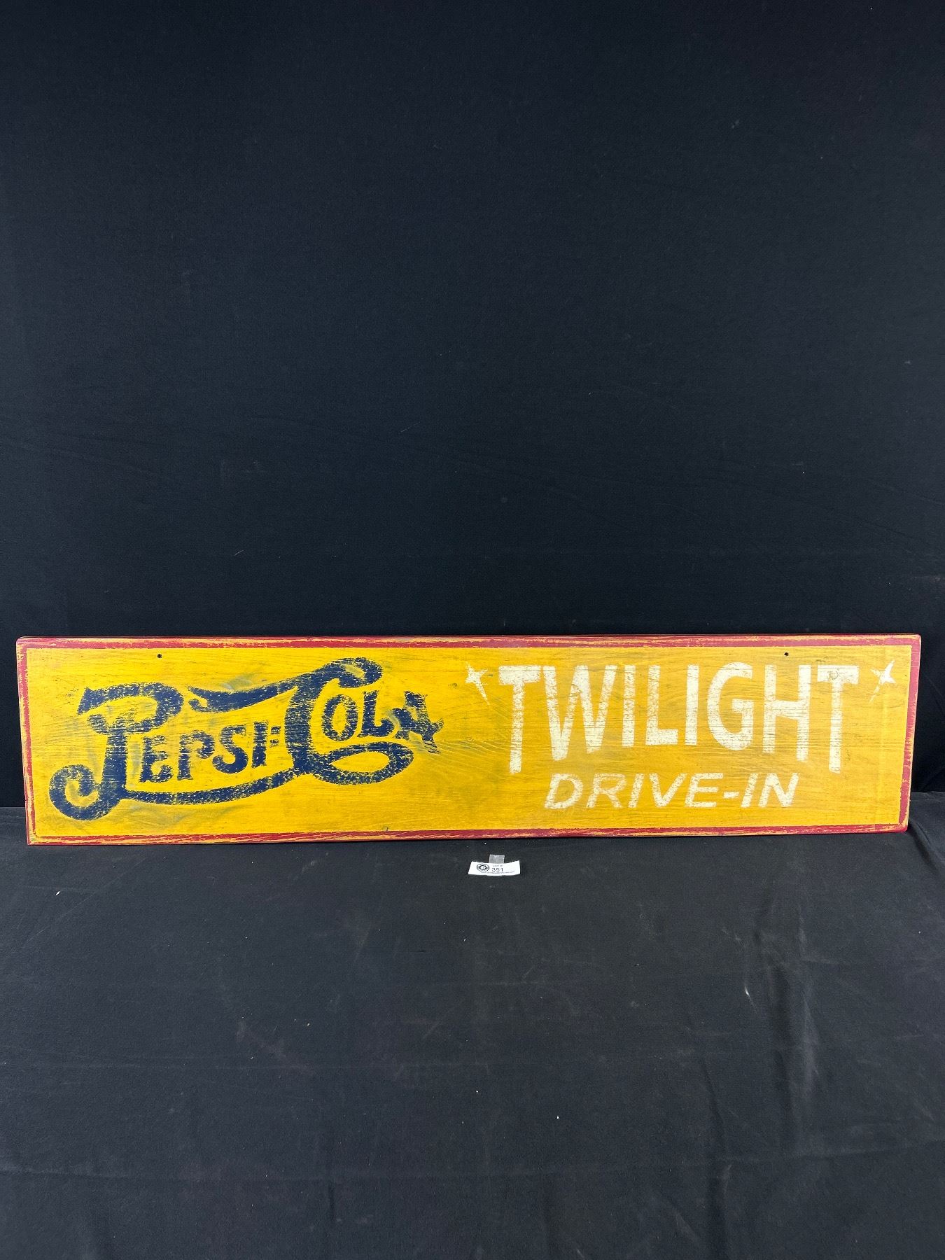 Pepsi "Twilight Drive In" Wood Sign. Quality Reproduction. NO SHIPPING. Approx. 10 1/2" x 46"