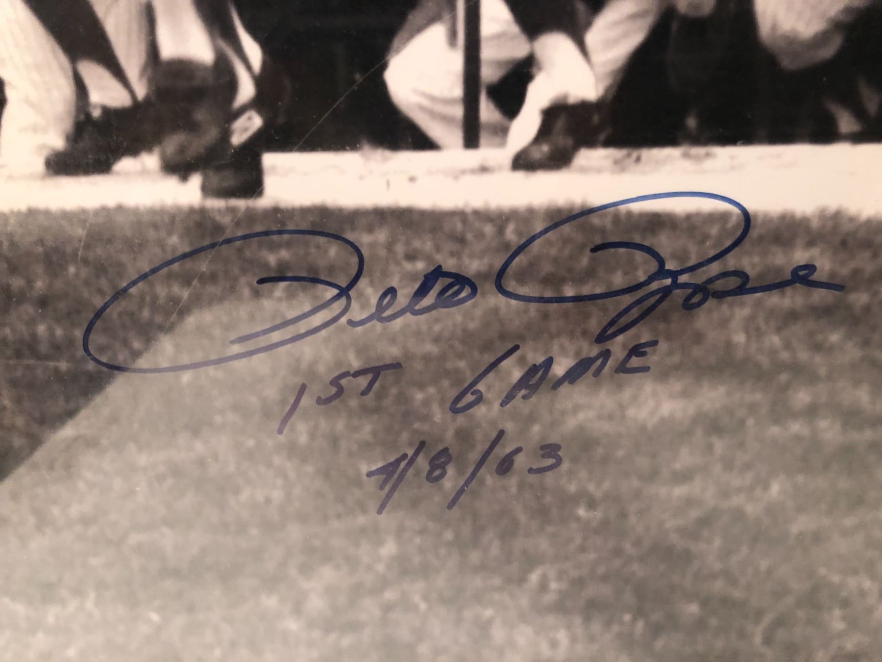 Pete Rose 1st Game 4/8/63 signed collector's piece
