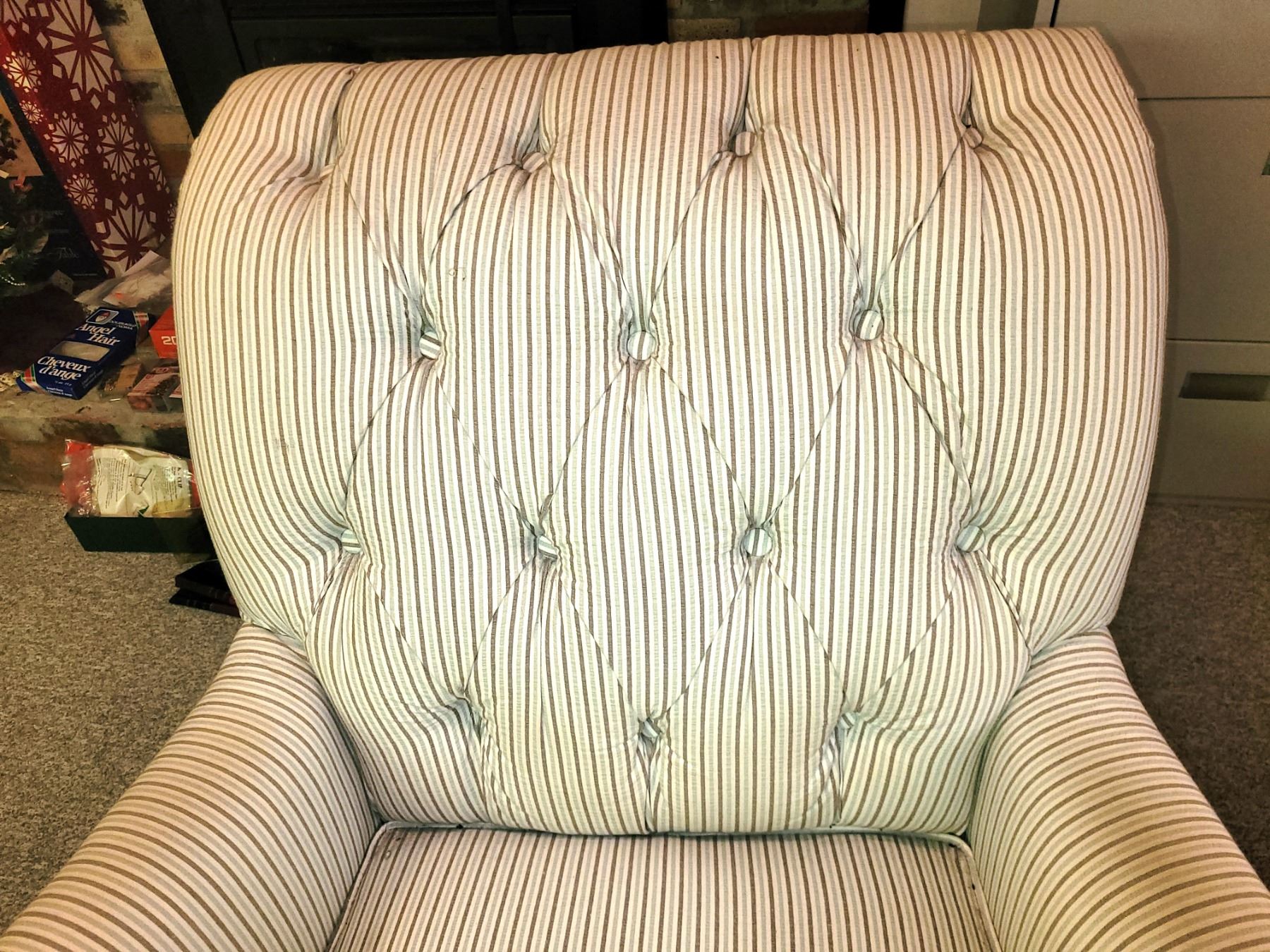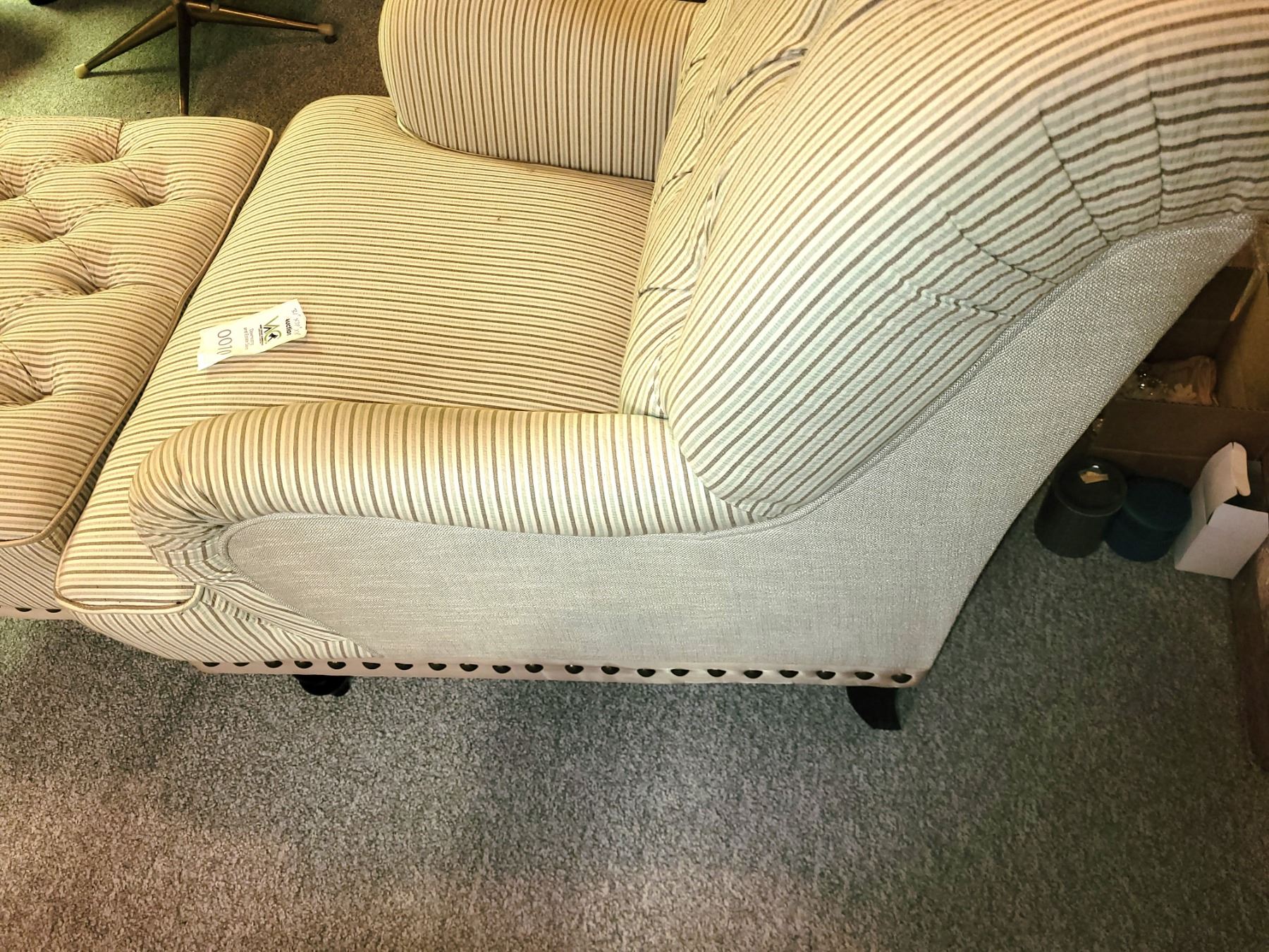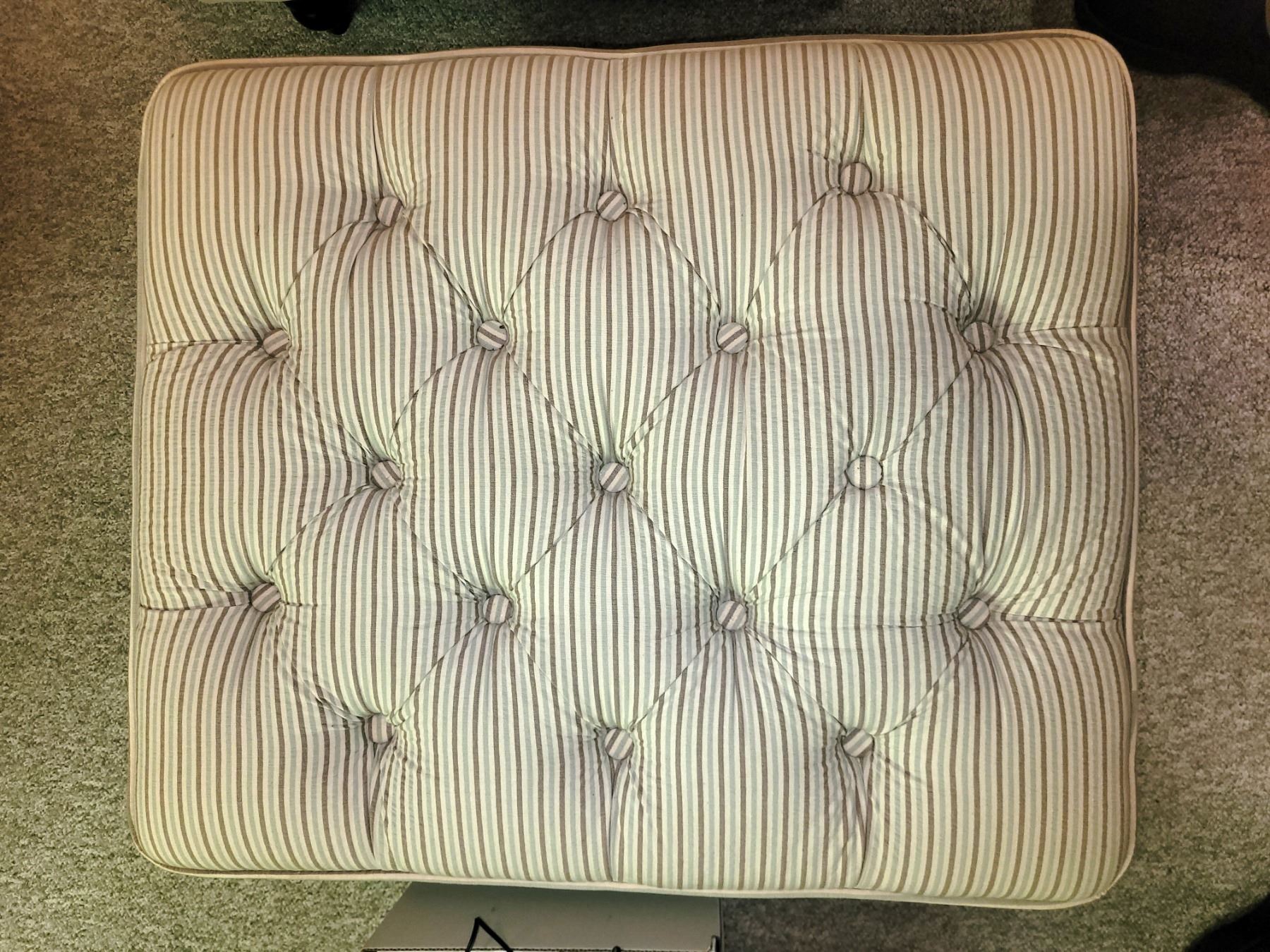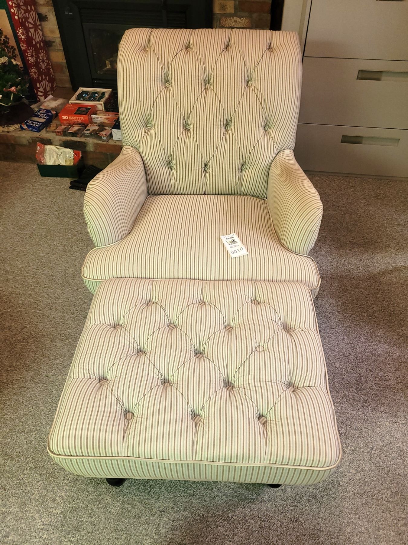 Pier One tufted chair, 31x34x36 and matching ottoman. Pick up 9-10