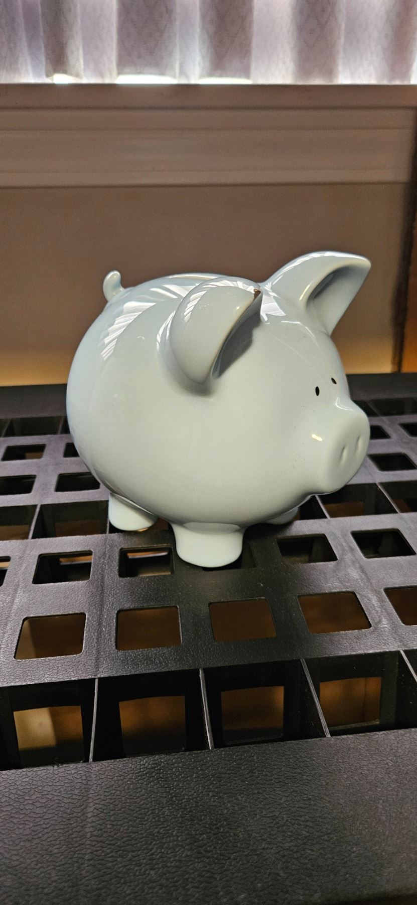 Pig Piggy Bank - Light Blue. 1 small chip on ear