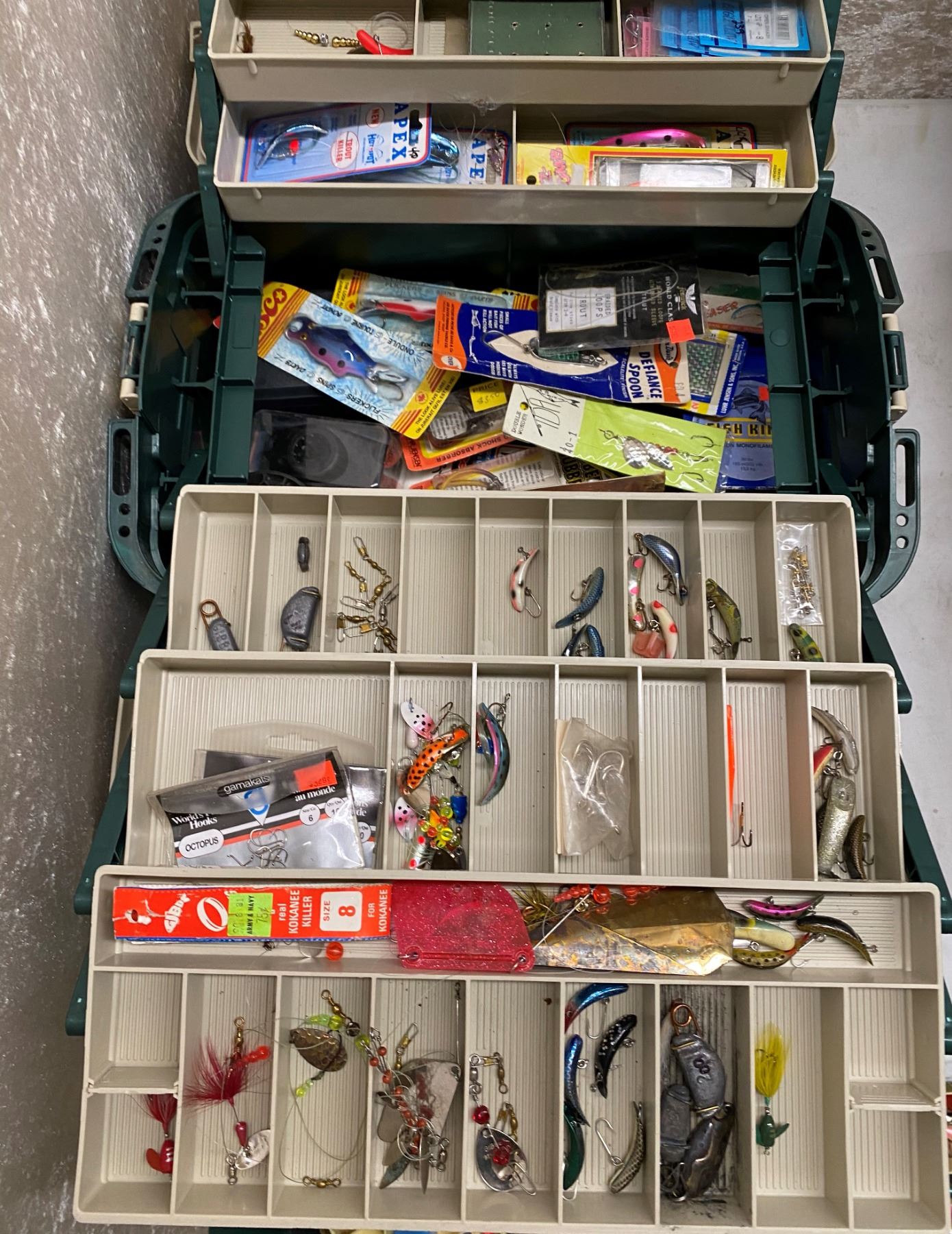 Plano tackle box & contents (mix of fresh water & ocean tackle)