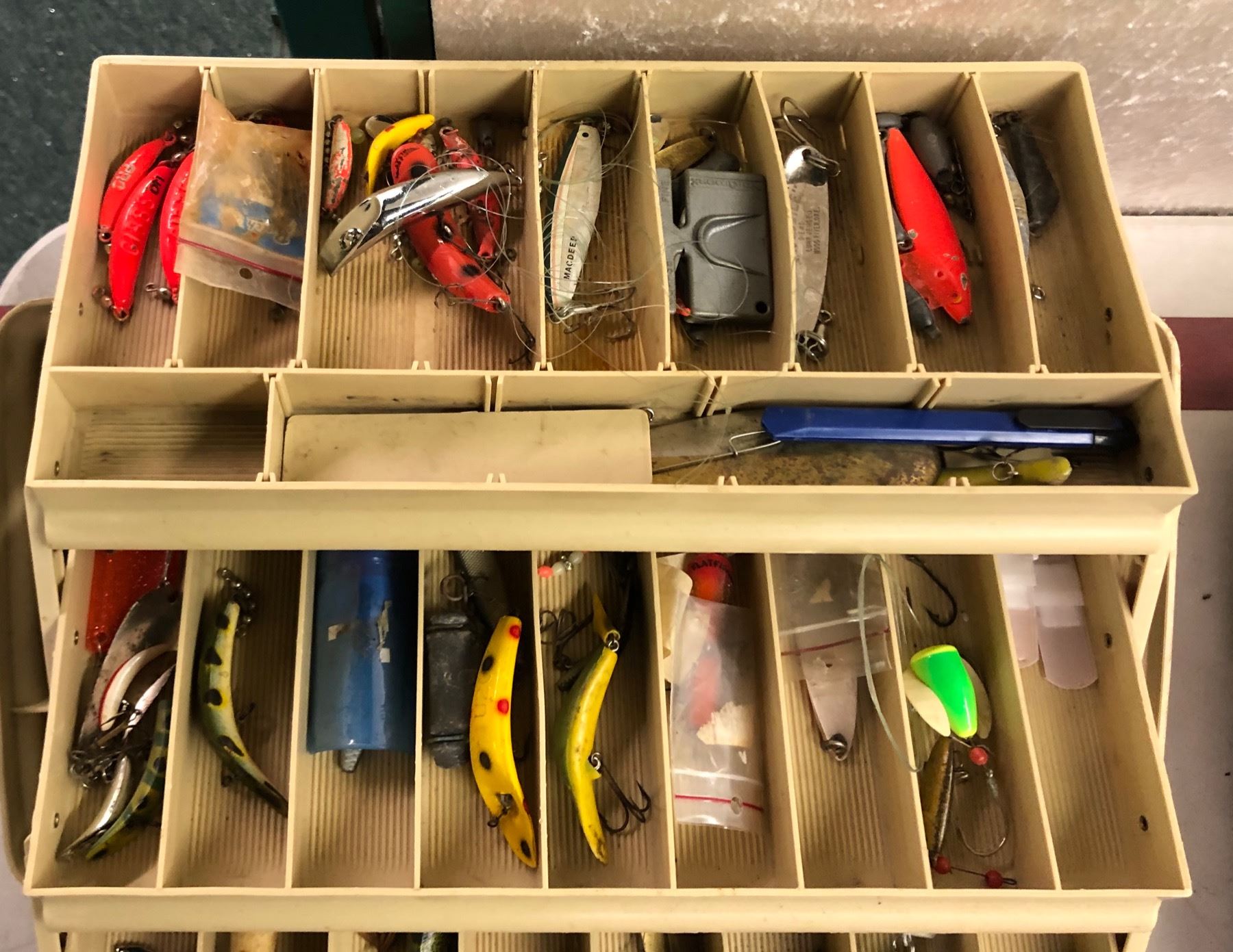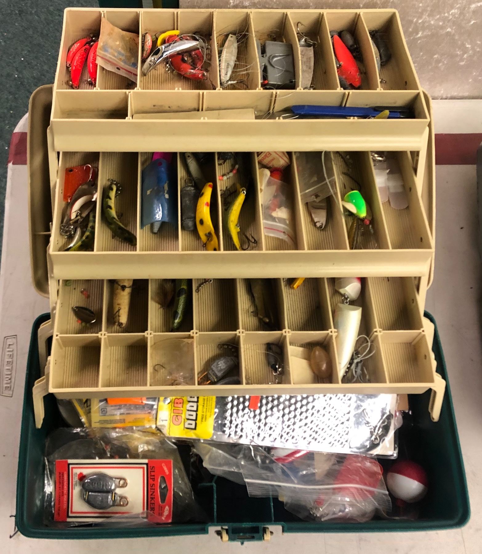 Plano tackle box & contents (mostly fresh water tackle)