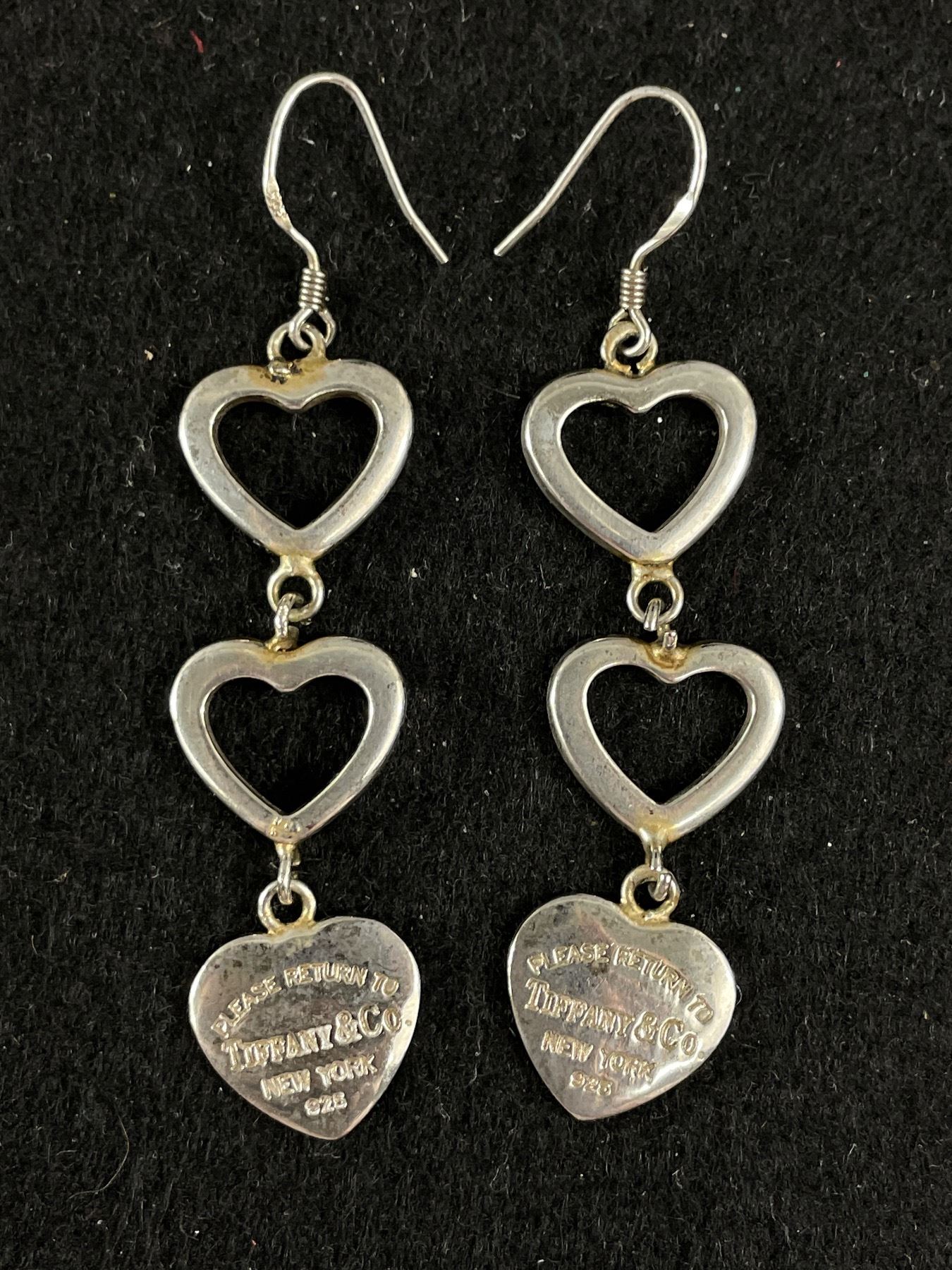 "Please Return To Tiffany & Co. New York" 925 Hearts Dangle Earrings