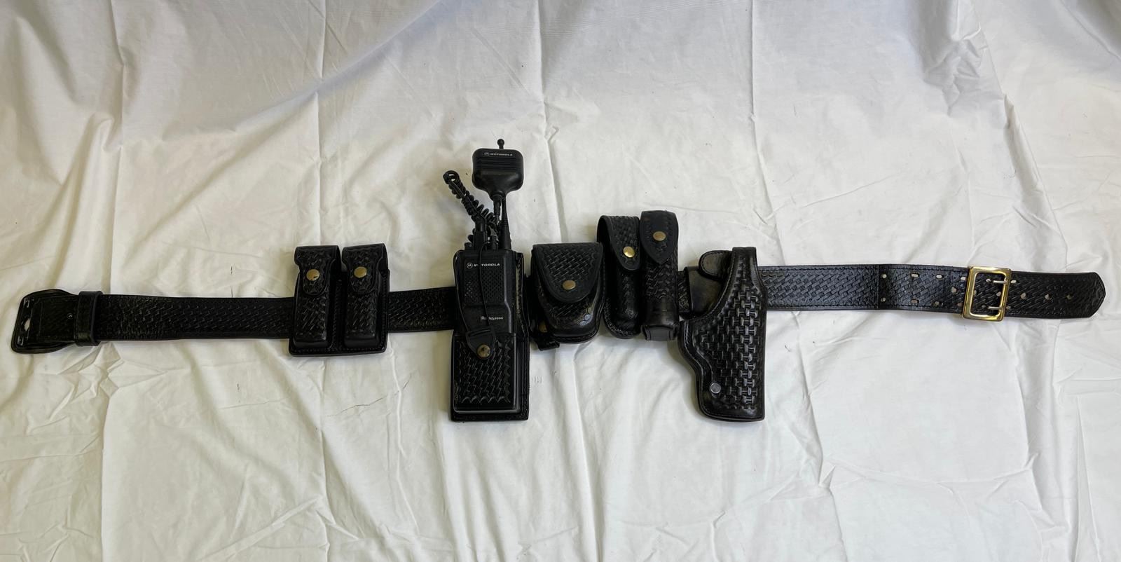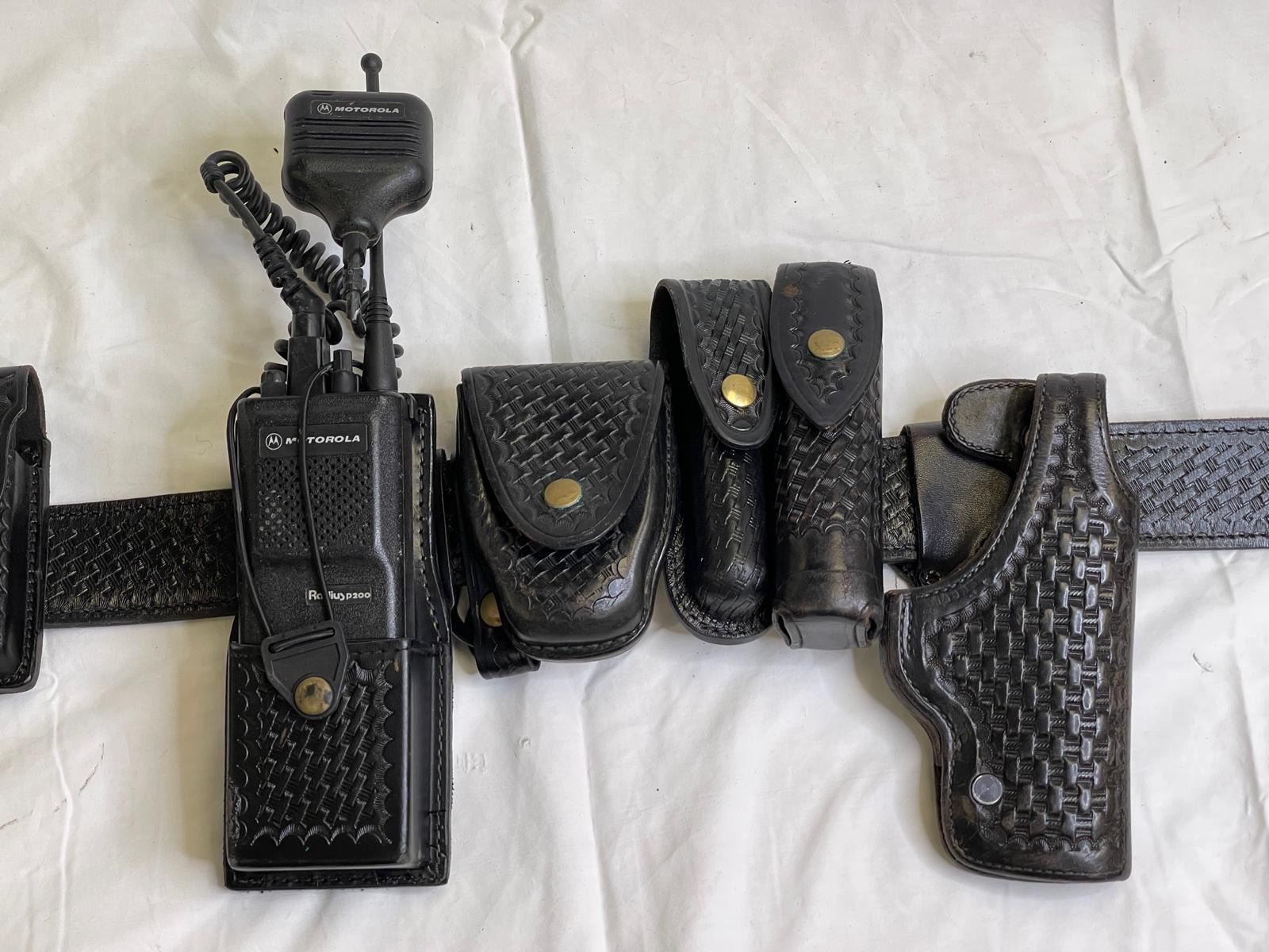 Police Utility Belt Kit - includes leather belt/ magazine pouch/ radio pouch w/ Motorola walkie-talkie & microphone/ pepper spray pouch/ cuff case/ gun holster