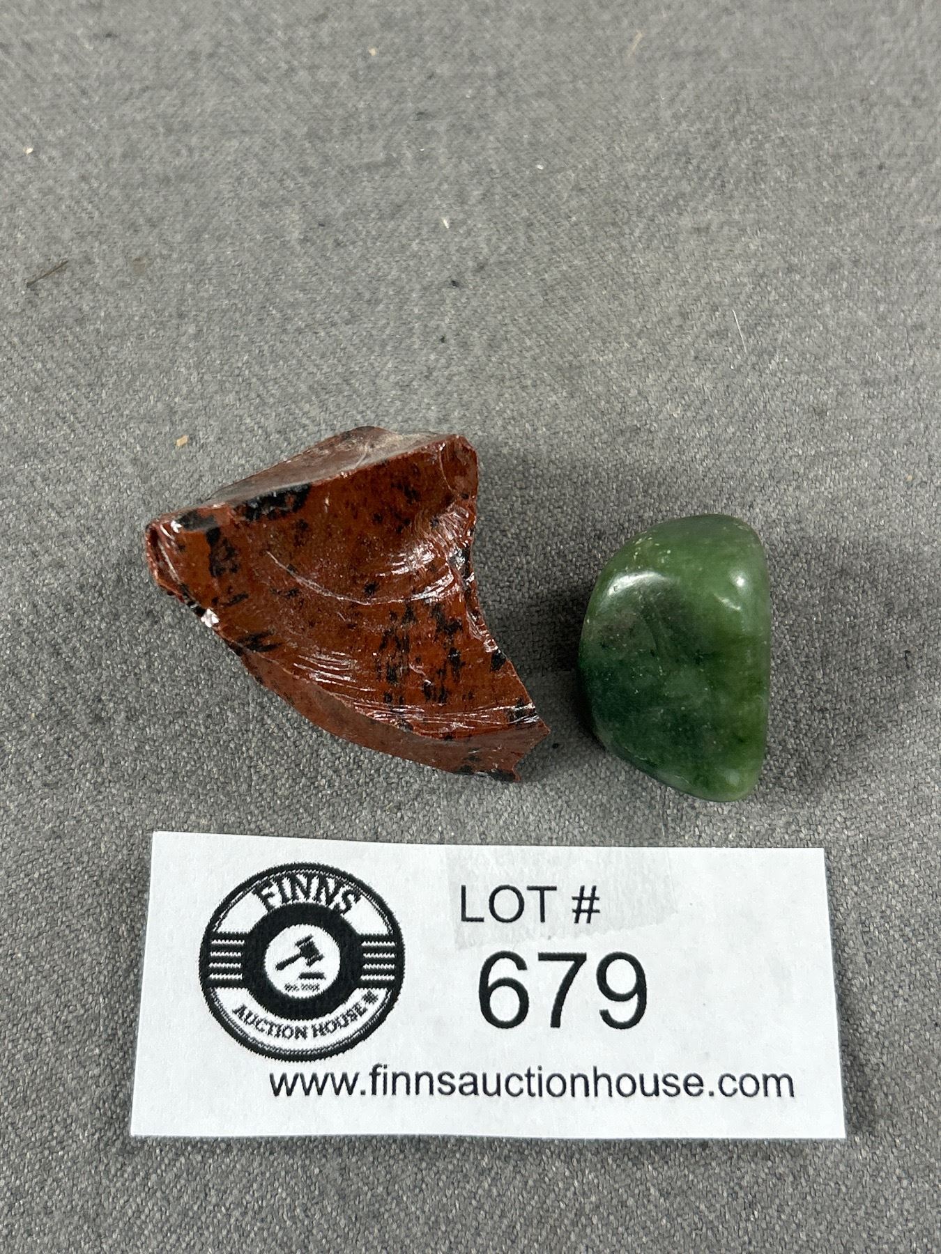 Polished Jade Stone Specimen & Coffee Obsidian Stone (Retails $280.00)