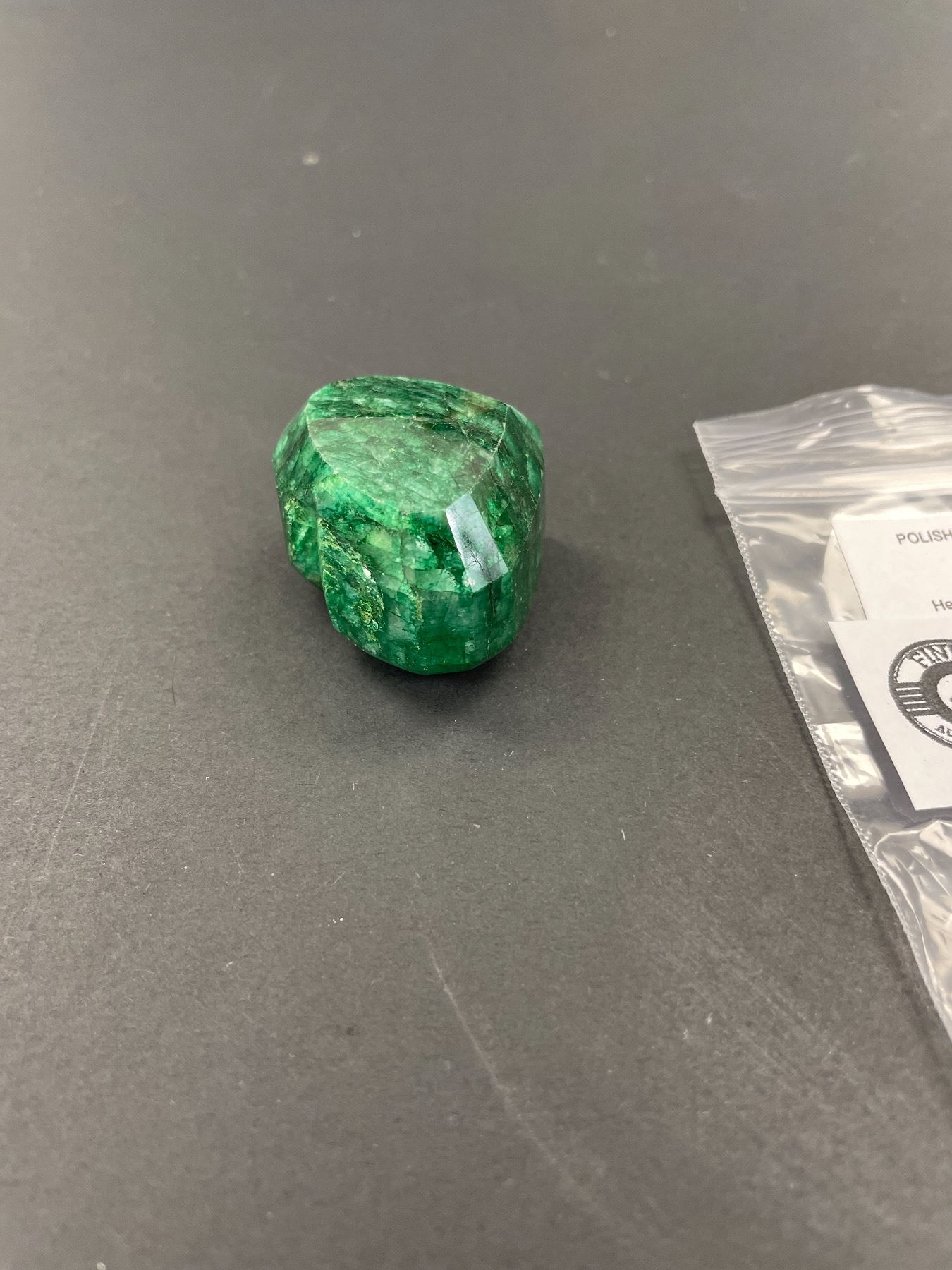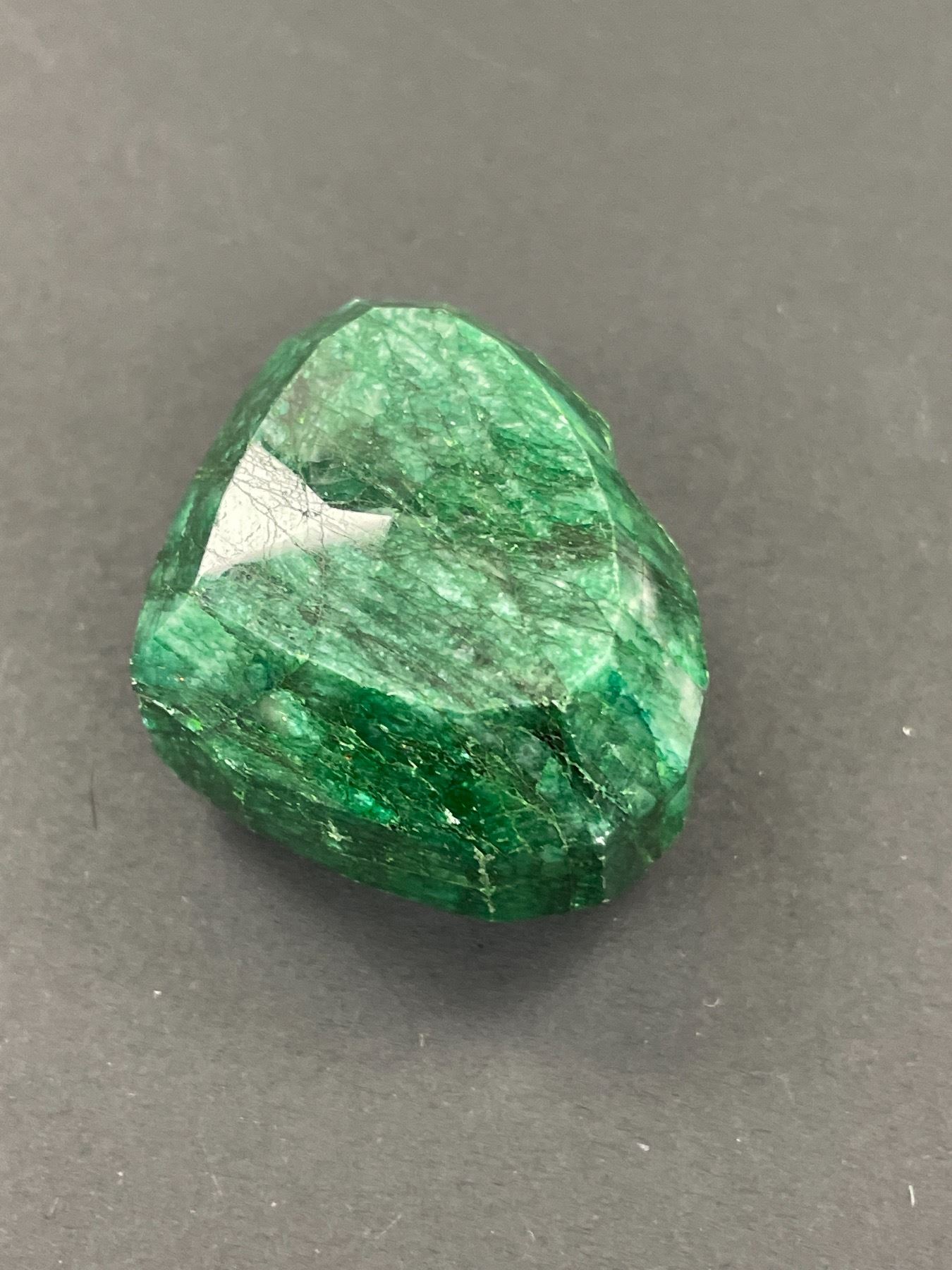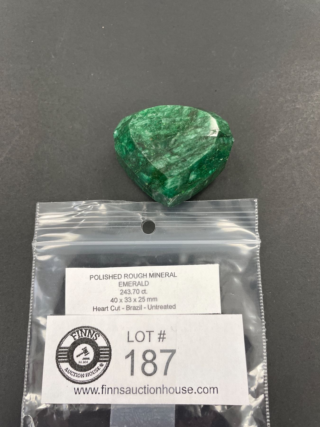 Polished Rough Mineral Emerald 243.70ct 40 x 33 25mm Heart Cut Brazil Untreated