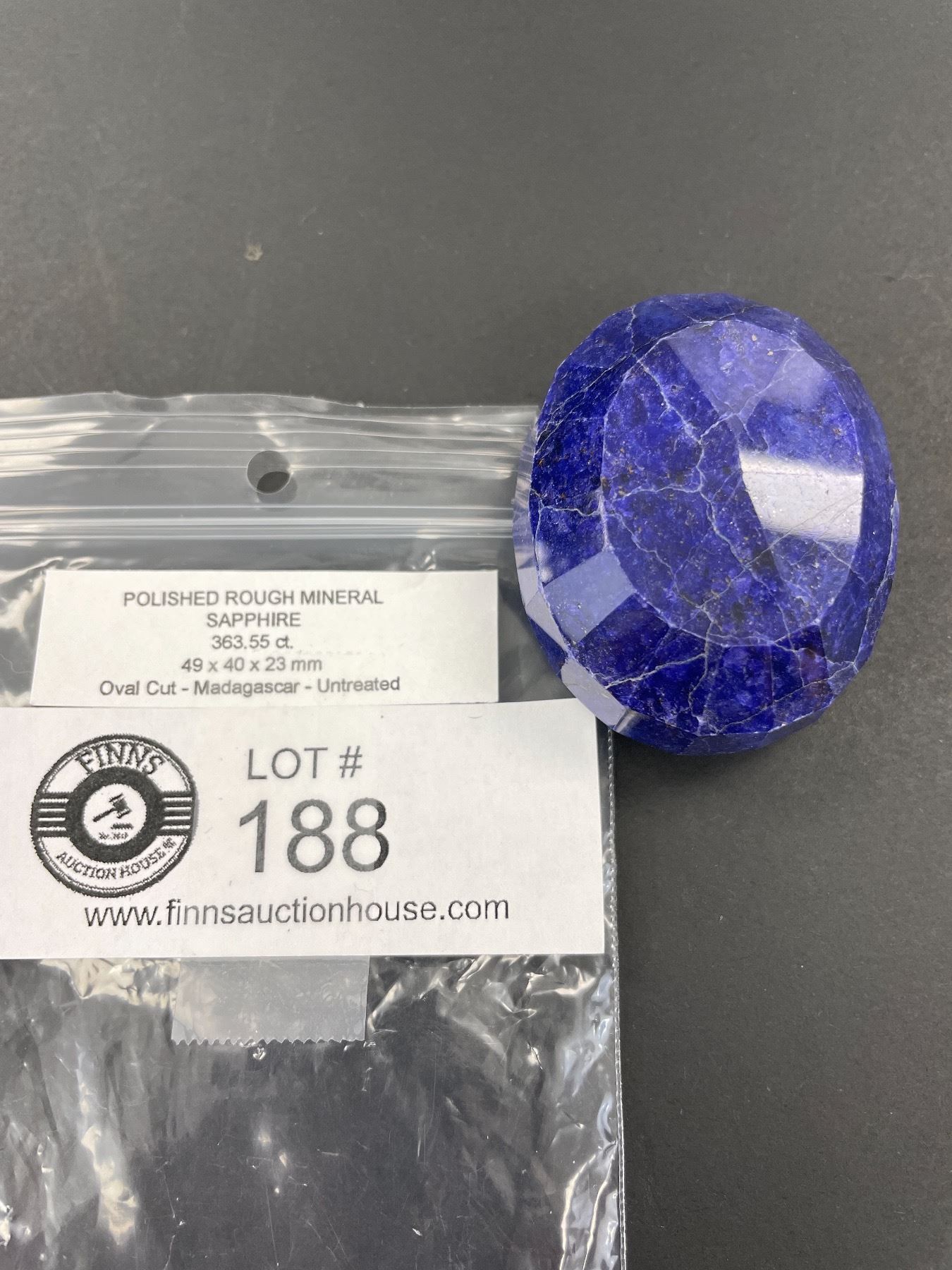 Polished Rough Mineral Sapphire 363.55ct 49 x 40 x 23mm Oval Cut Madagascar Untreated