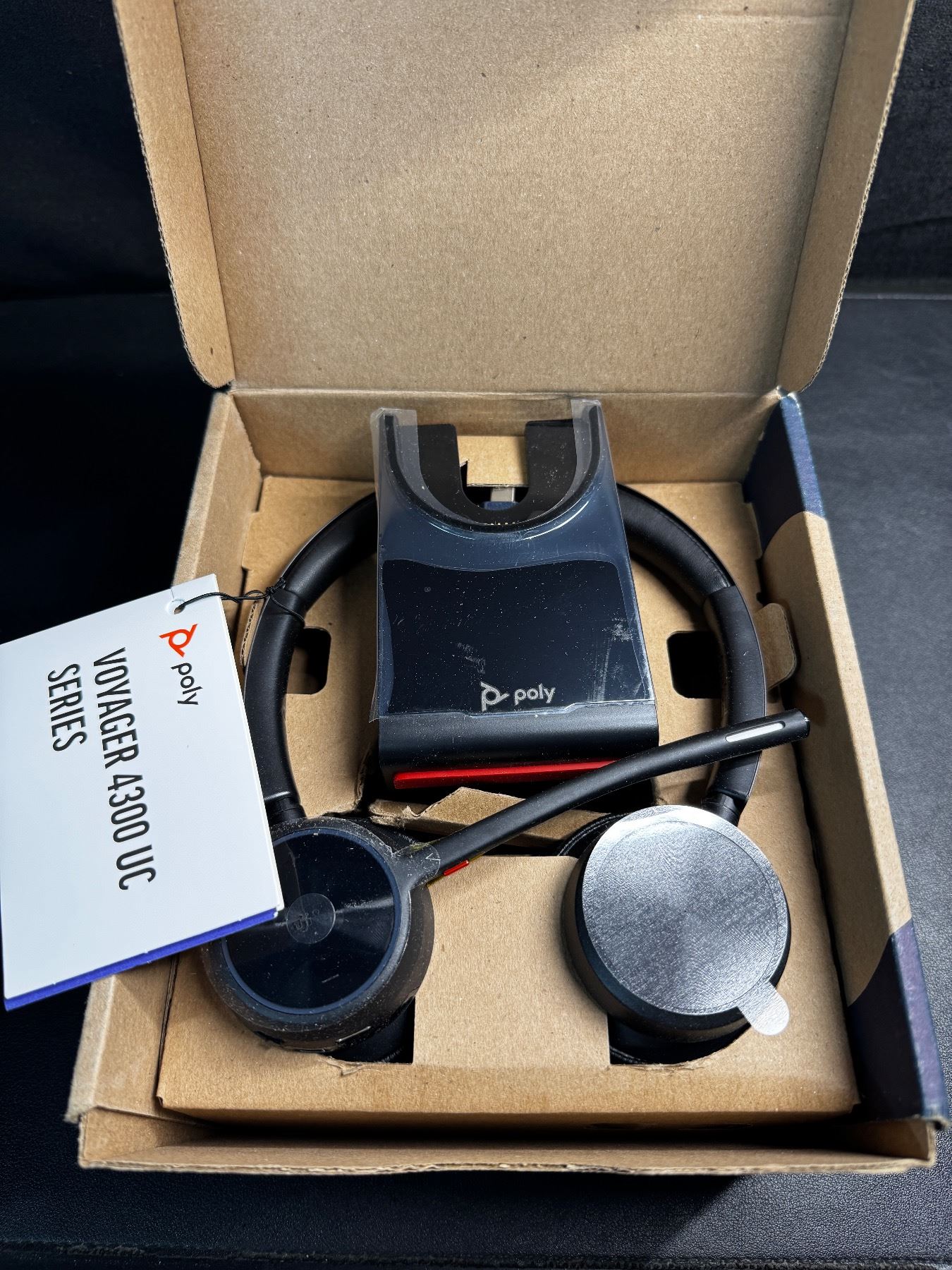 - Poly Voyager 4320 UC Wireless Headset & Charge Stand (Plantronics) - Stereo Headphones w/Noise-Canceling Boom Mic - Connect PC/Mac/Mobile via Bluetooth-Works w/Teams (Certified for Microsoft Teams)