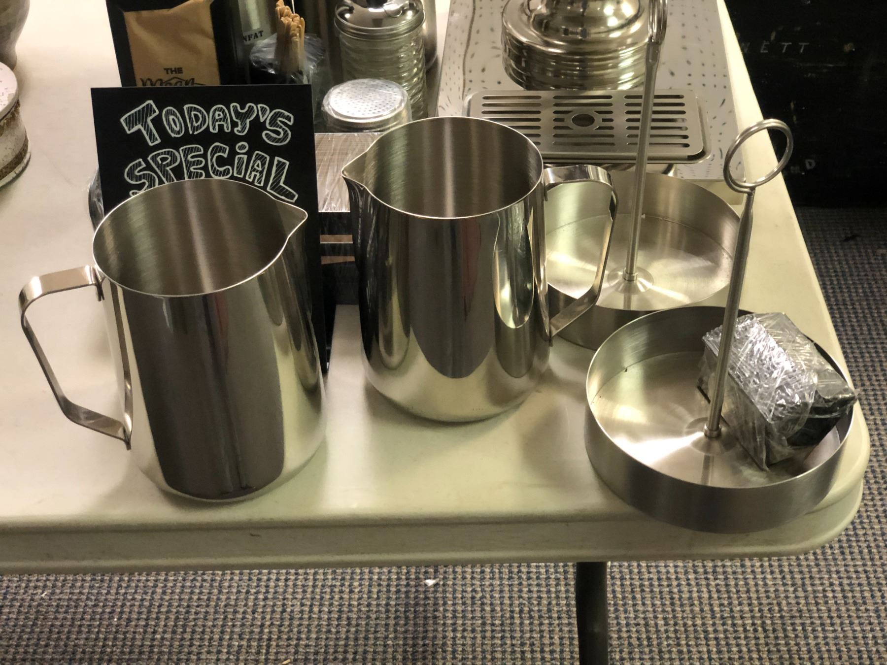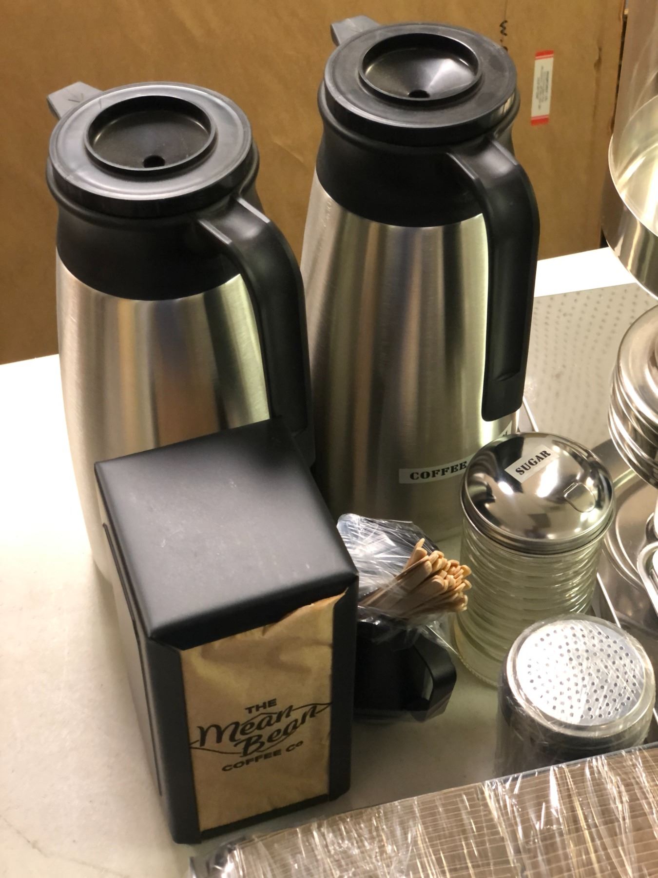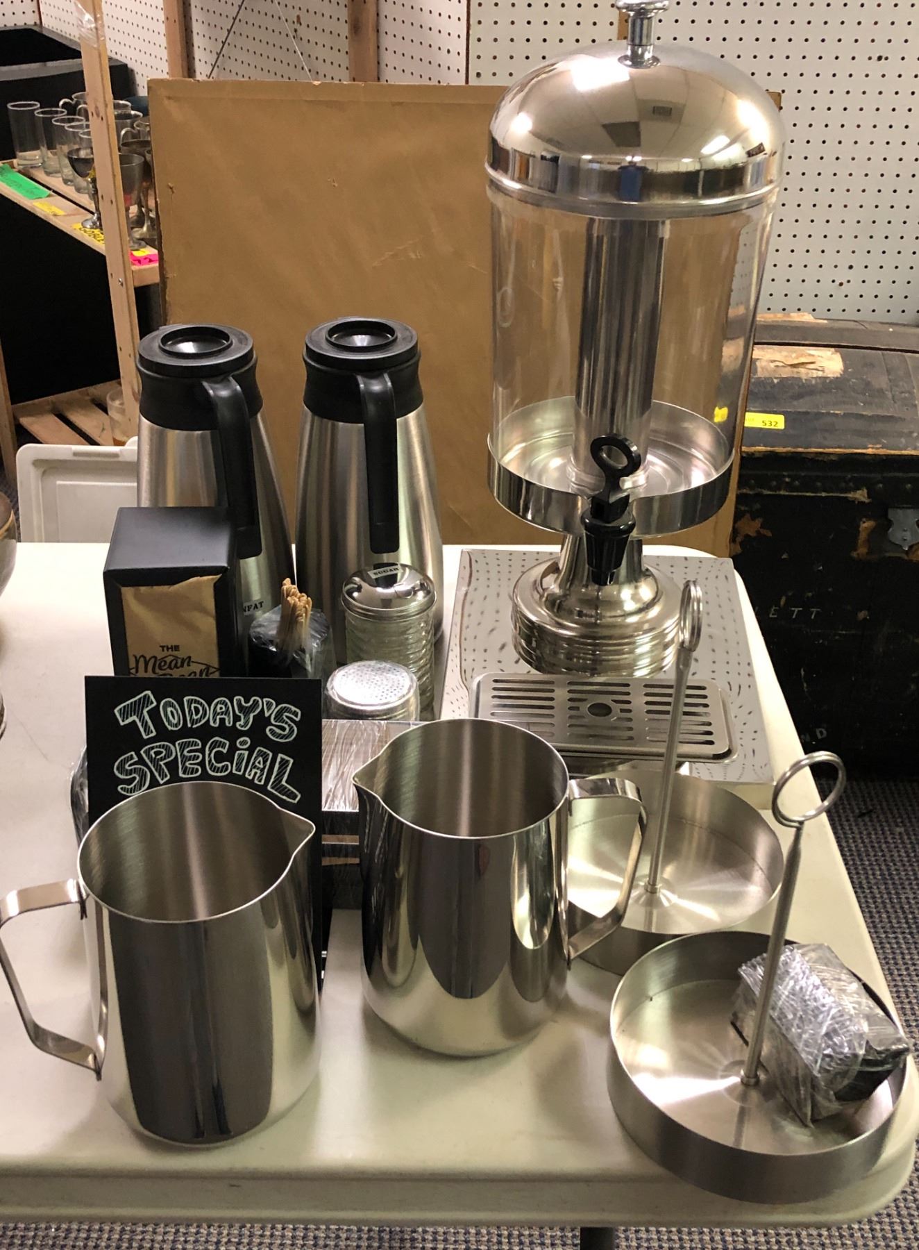 "Popular Animation Movie" Mean Bean coffee shop contents - coffee carefes / large water urn / jug w/ stir sticks / sugar canister / today's special plexi sign etc