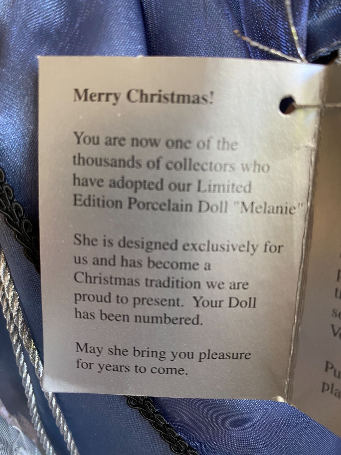 Porcelain doll "Melanie" in 20" box.