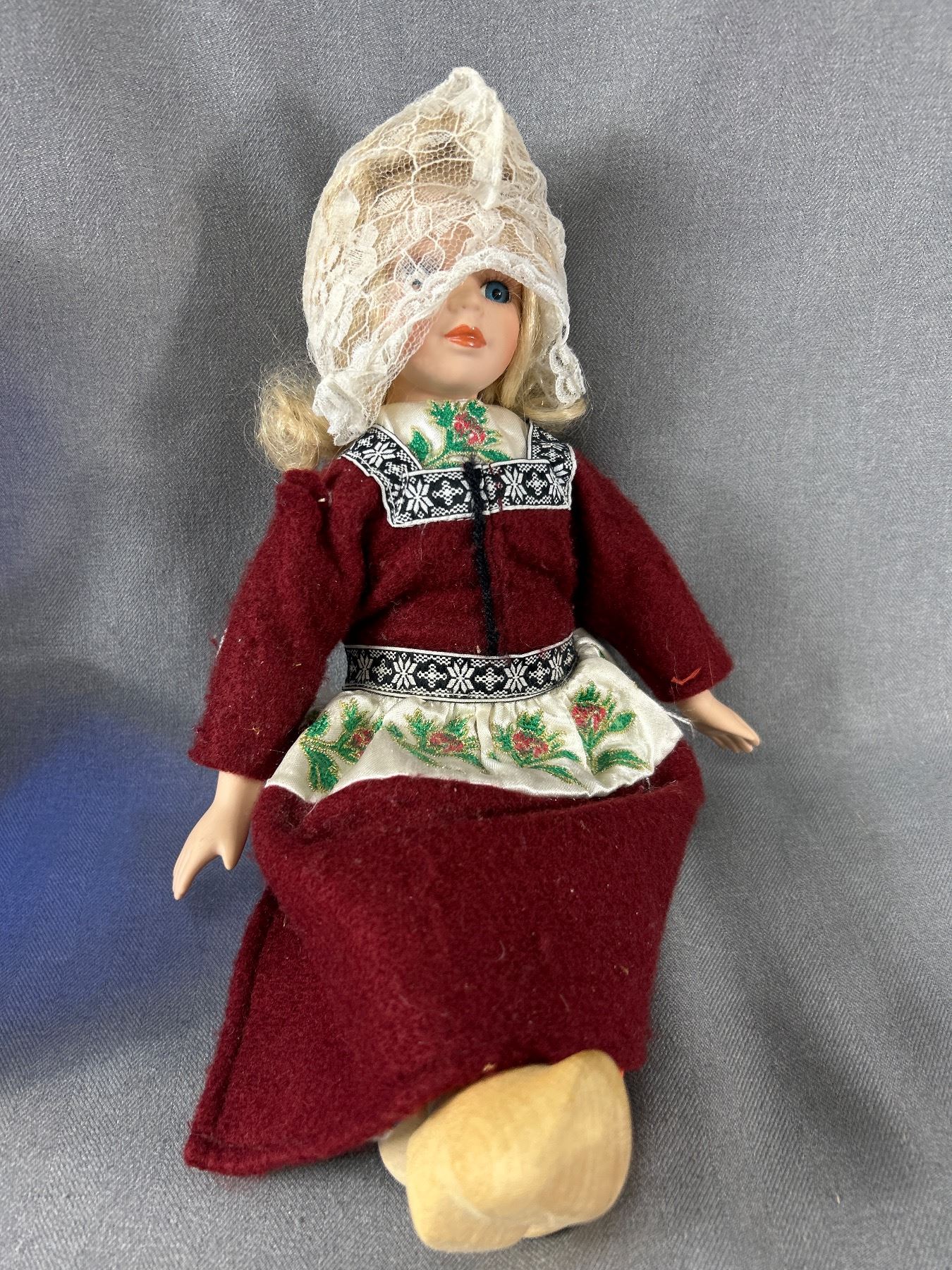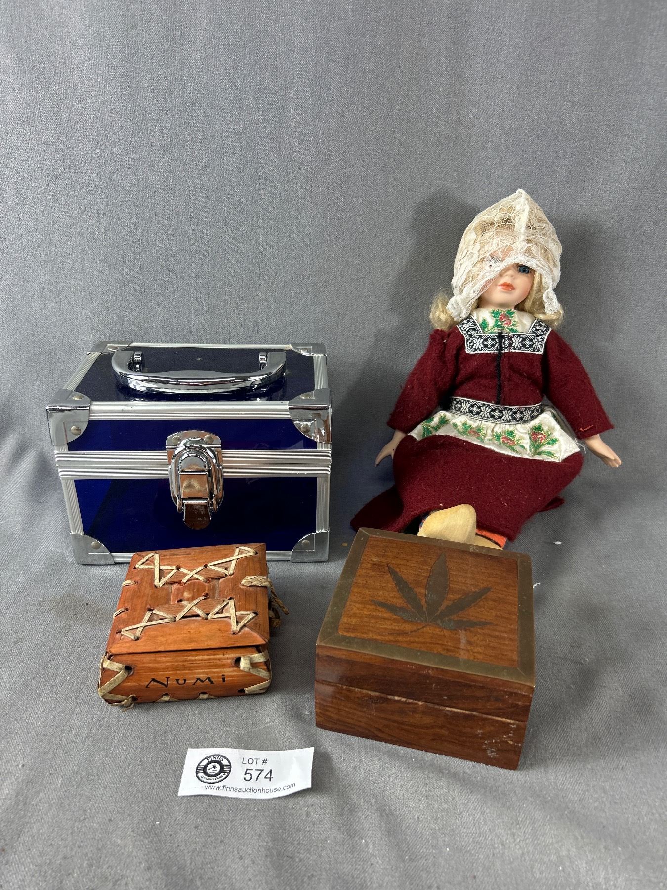 Porcelain Dutch Doll w/ Wood Shoes & Misc Trinket Boxes
