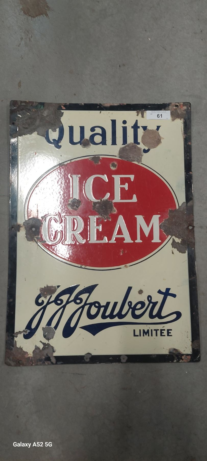 Porcelain ice cream sign, J-J-J-Joulbert 28" x 19"